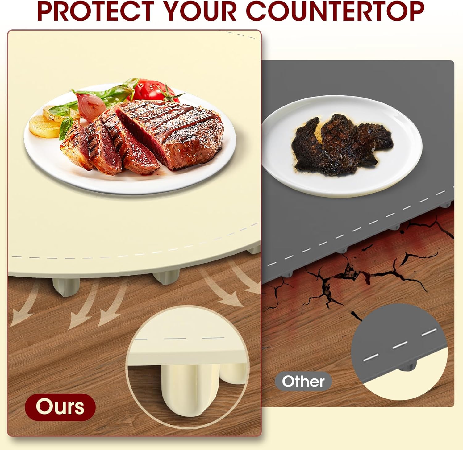 - 【Child Safety Lock and Higher Pad Feet】Food warming mat control panel has a built-in child safety lock that locks securely with a 3-second long press to protect your child's curious little hands.. Equipped with higher silicone pad feet, the warming tray enhances heat dissipation, keeping your tabletop safe from the heat damage