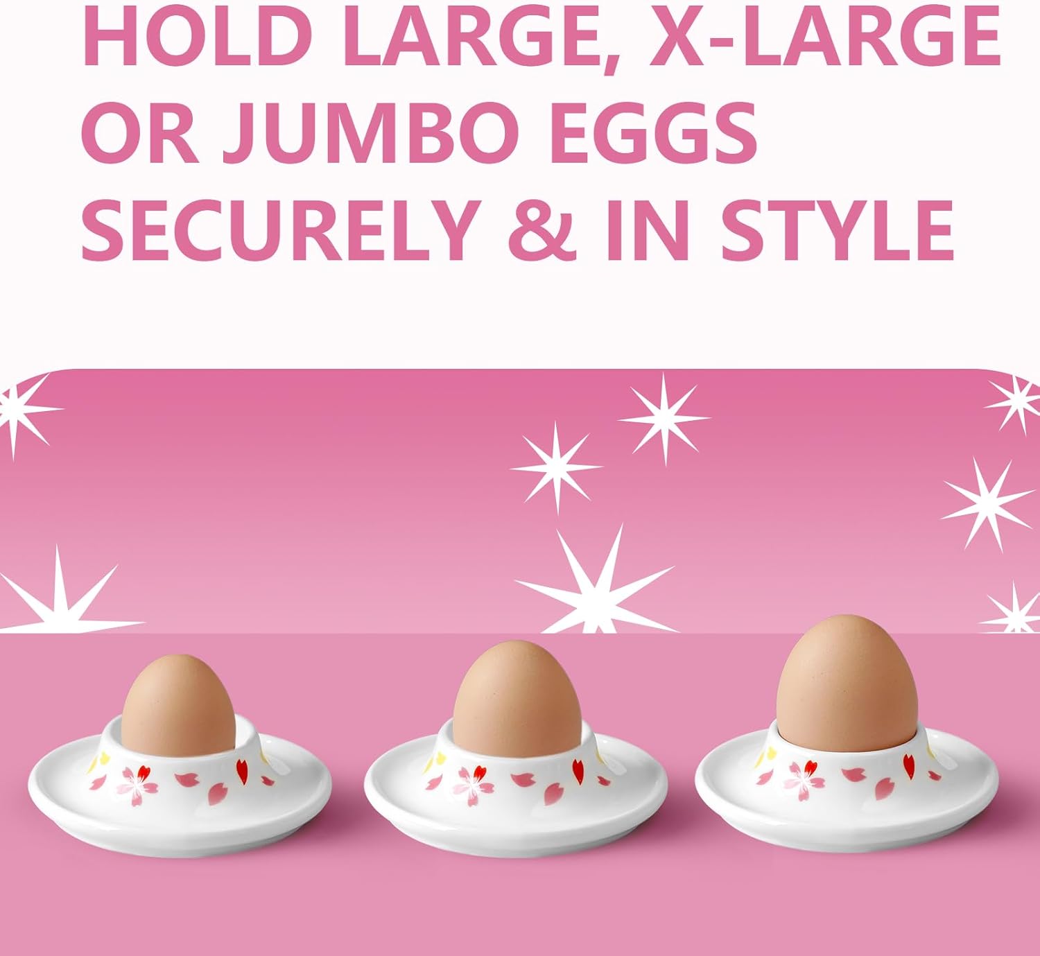 - Sakura porcelain egg holder feature an elegant sakura with a sleek curved design that adds sophistication and ceremony to the table. Comes in a set of 2, 3.7" x 1", and fits most hard-boiled eggs