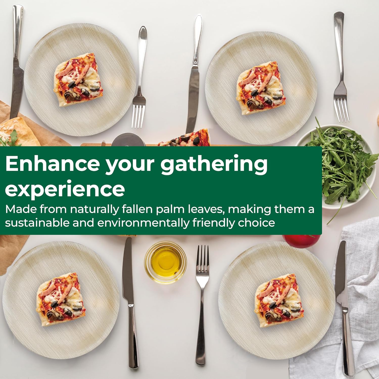 Palm Leaf Disposable Plates - Bamboo Plates Disposable 12 Inch Round (50pc) - 100% Compostable & Biodegradable Plastic-Free Plates - Heavy-Duty, Party Dinnerware Set - Microwave & Oven Safe