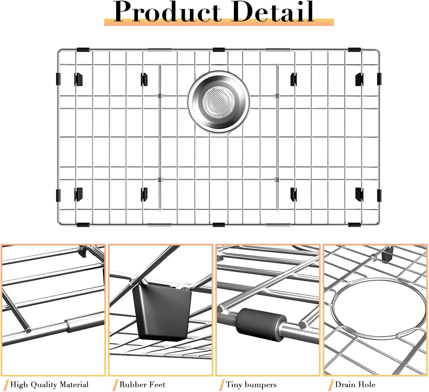 - Product Design: The stainless steel sink bottom protector effectively protects the sink from garbage inflow. An open grid design allows water to flow freely from under plates and cutlery to improve sink drainage
