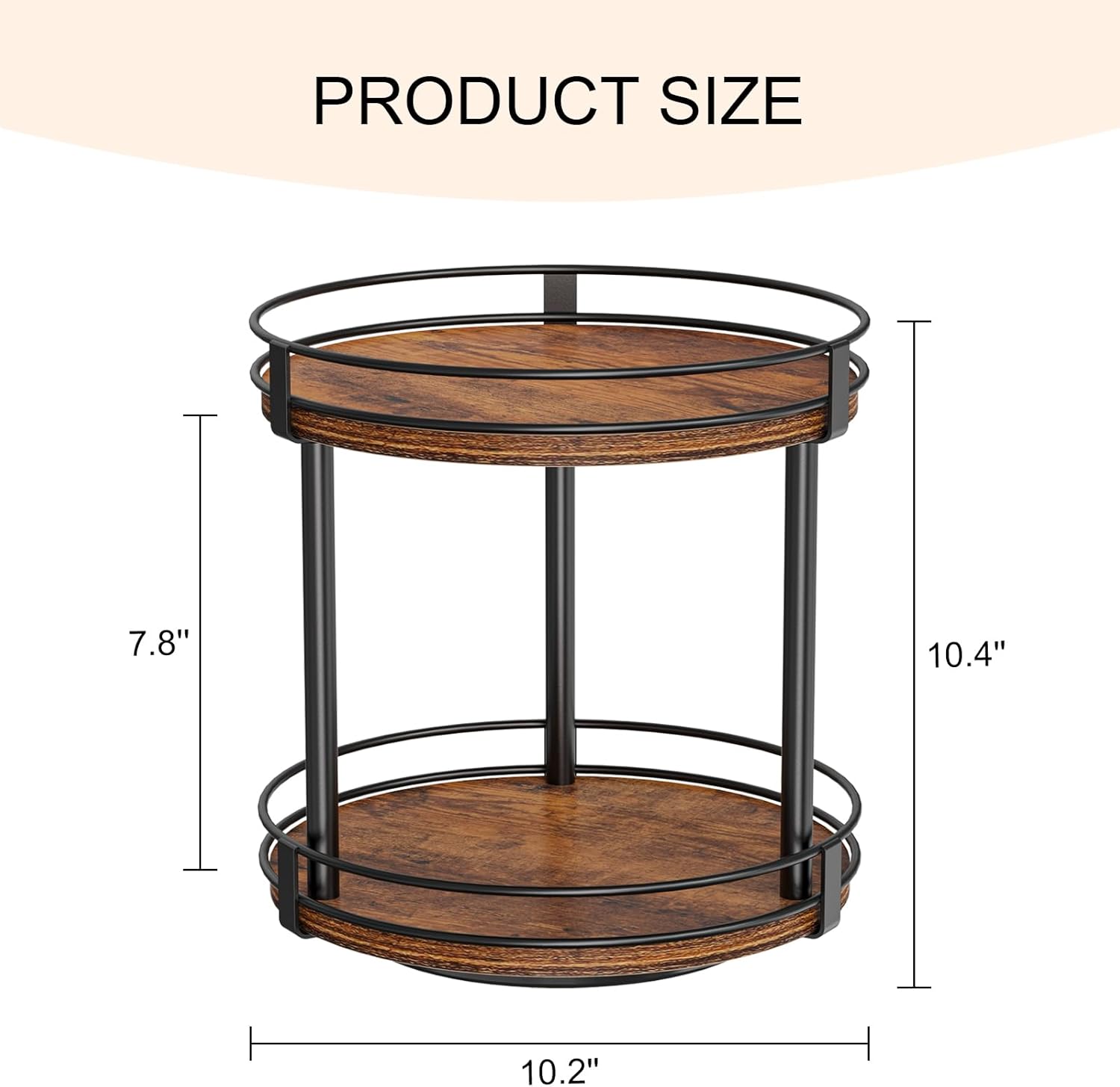 Snughome Rotating Spice Rack, 2 Tier Lazy Susan Organizer, Wood Kitchen Countertop Organizer, Brown Lazy Susan Turntable for Cabinet, 10.2" x 10.2" x 10.4"