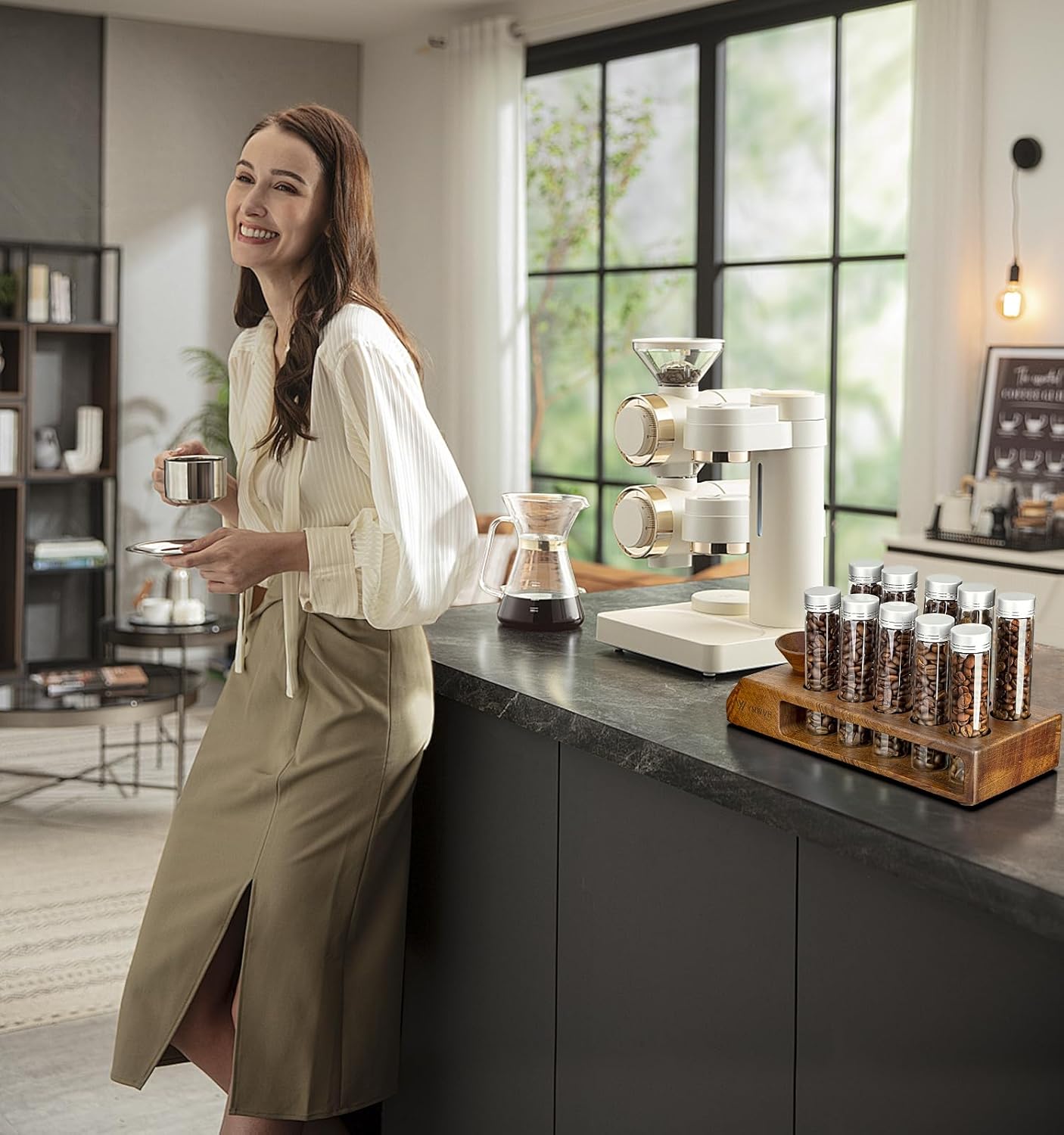 - 【Stability and Elegance in the Solid Wooden Base】- Pure solid wooden base and funnel (Sapele) with unique front cut-out design, showing elegance and high class taste. Not only practical, but also add beauty to your living space.