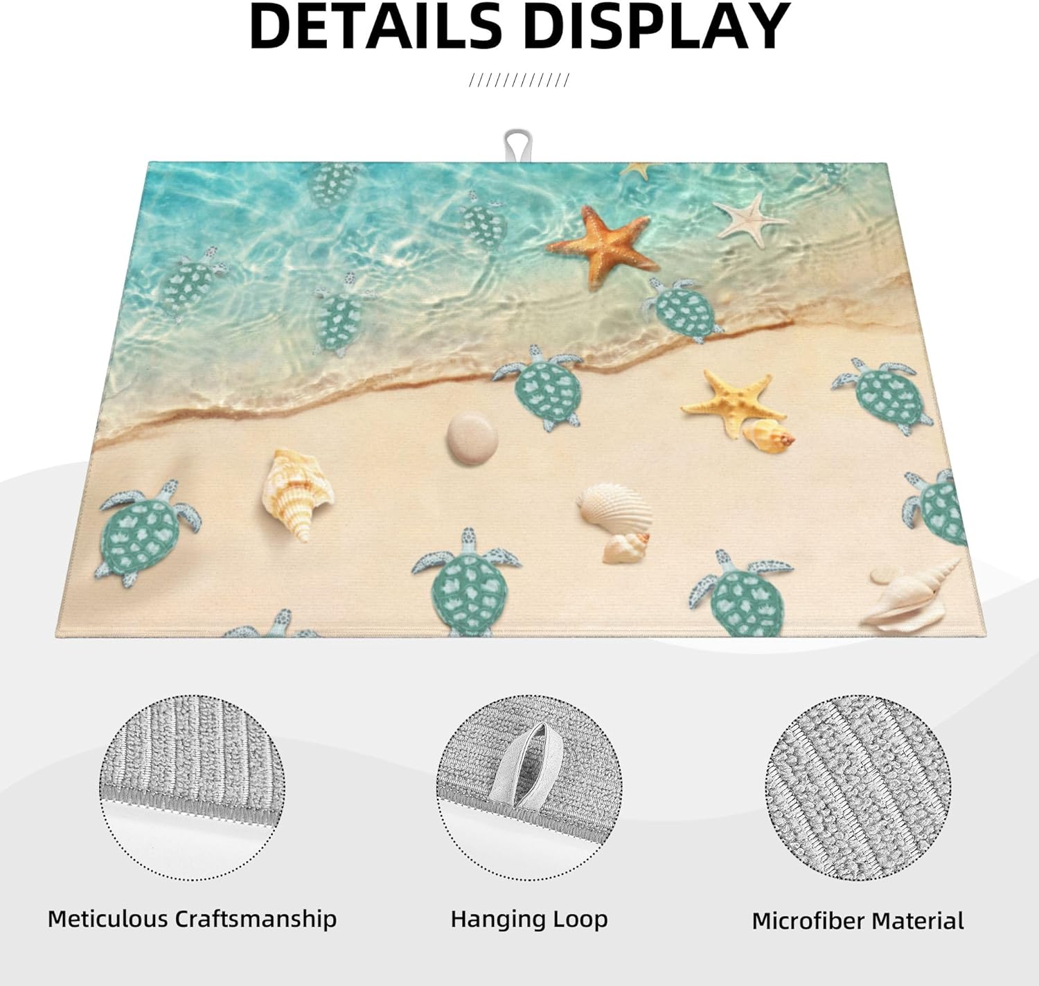 Sea Turtles Beach Dish Drying Mat for Kitchen Counter Cute Drying Pad 18x24 Inch Teal Nautical Decor Absorbent Reversible Dish Drainer Rack Mats