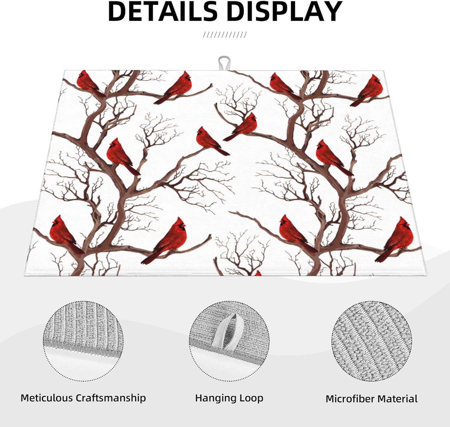Winter Cardinal Birds Microfiber Dish Drying Mat for Kitchen Counter 18"x24" Christmas Dishes Drying Pad Dish Drainer Rack Mats Absorbent Washable Reusable Christmas Kitchen Home Holiday Decor
