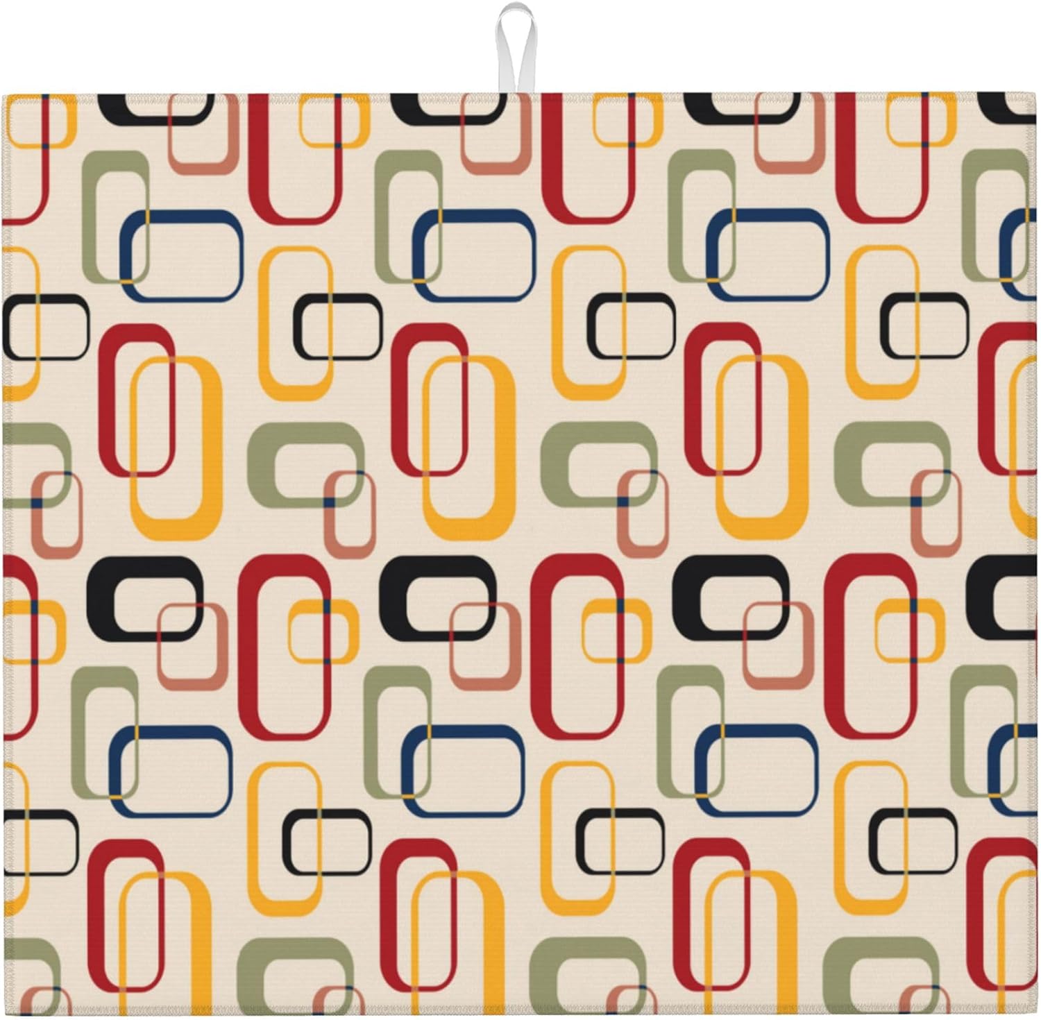 Mid Century Modern Retro Dish Drying Mat for Kitchen Counter Washable Absorbent Reversible Microfiber Vintage Decorative Drying Pad Kitchen Accessories 16x18 Inch