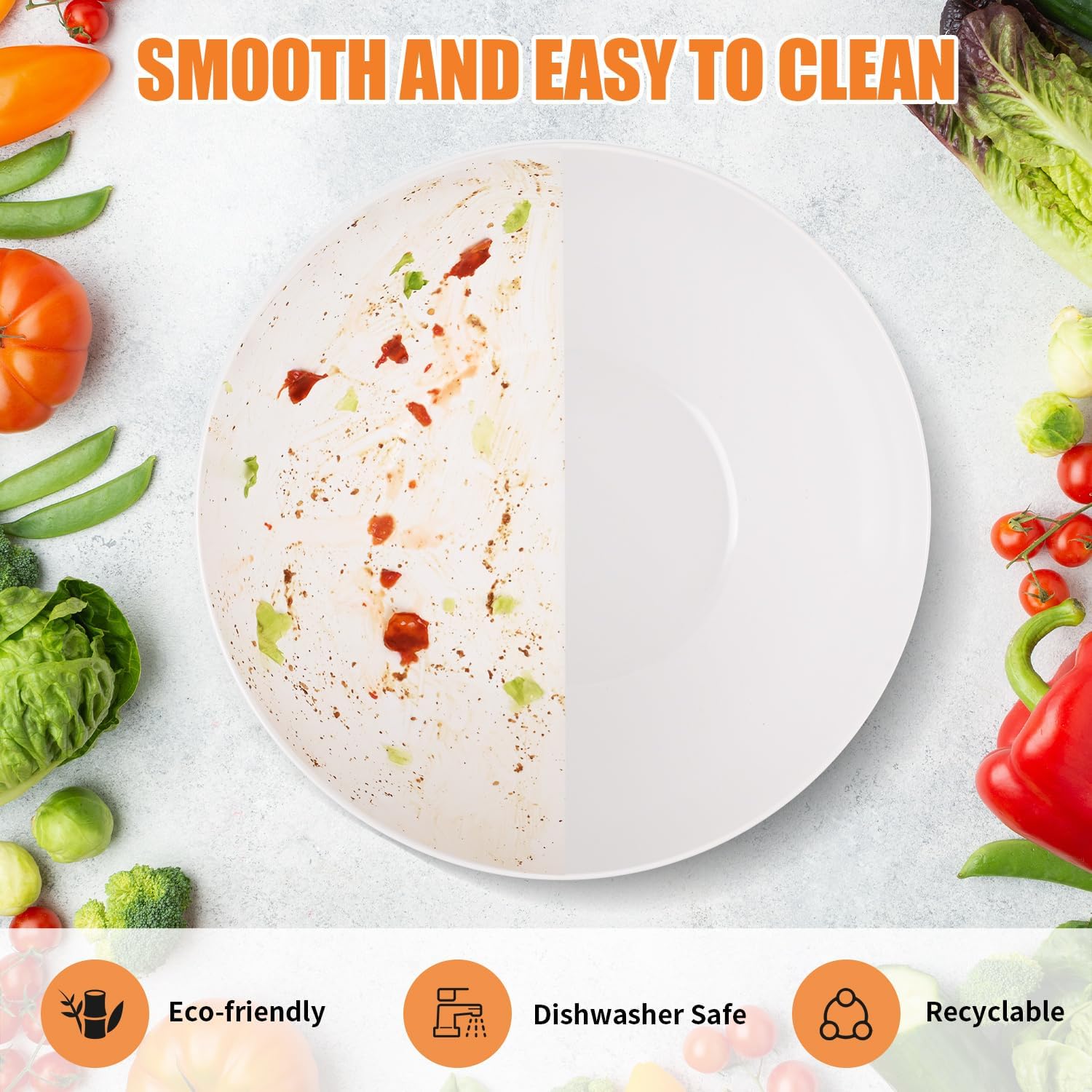 - Easy to Clean: The salad bowls large serving Smooth surface, easy to clean, can be used in dishwasher.Whether you wash it by hand or dishwasher, its smooth surface allows for effortless removal of stains and residues. The natural bamboo lid and utensils requires no special cleaning, and are recommended to be hand washed to maintain their natural beauty and prolong their lifespan