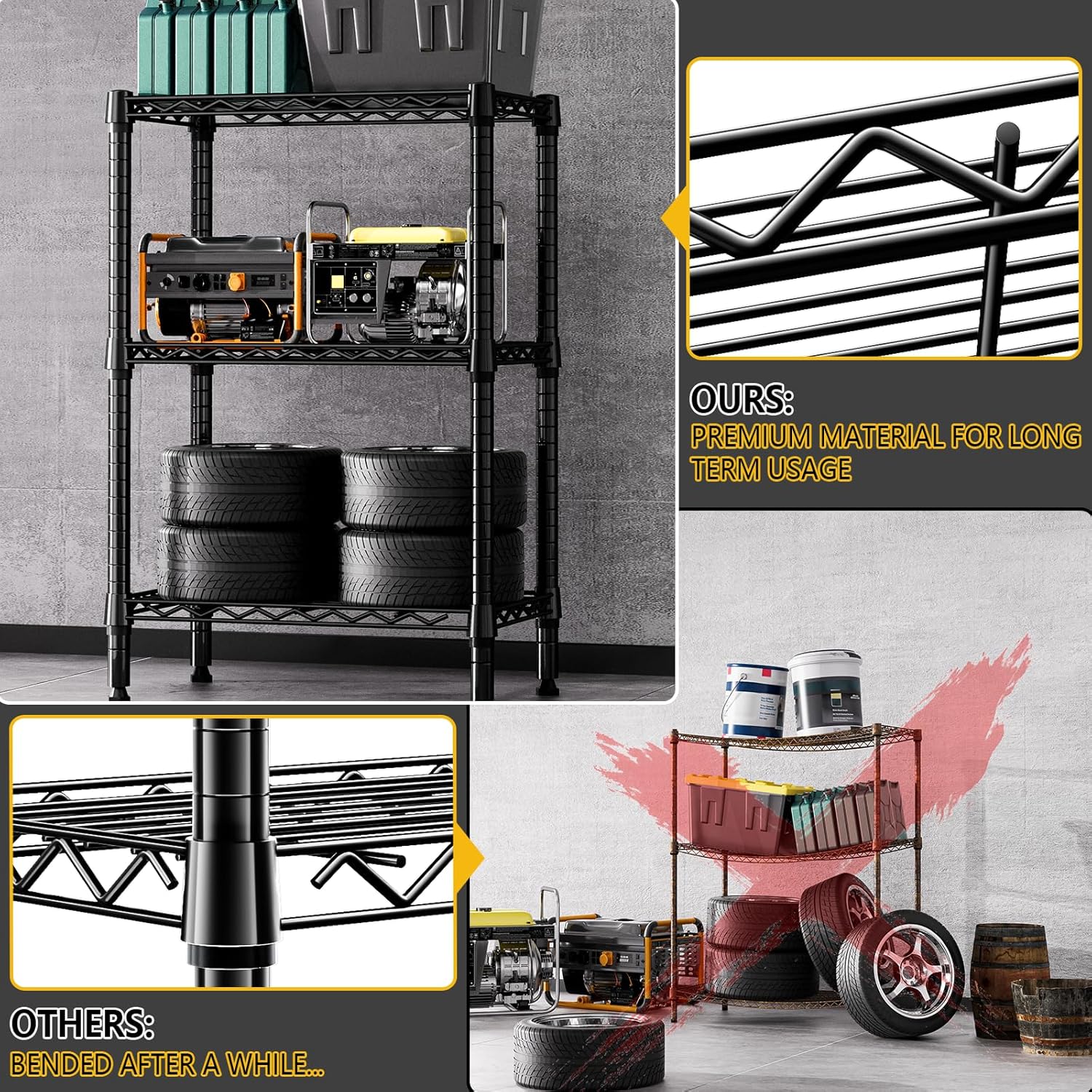 750 lbs 3 Tier Shelf Metal Storage Shelves Shelving Wire Rack Heavy Duty Closet Organizers for Garage Kitchen Bathroom Laundry Black 13.8" D x 23.6" W x 35.5" H