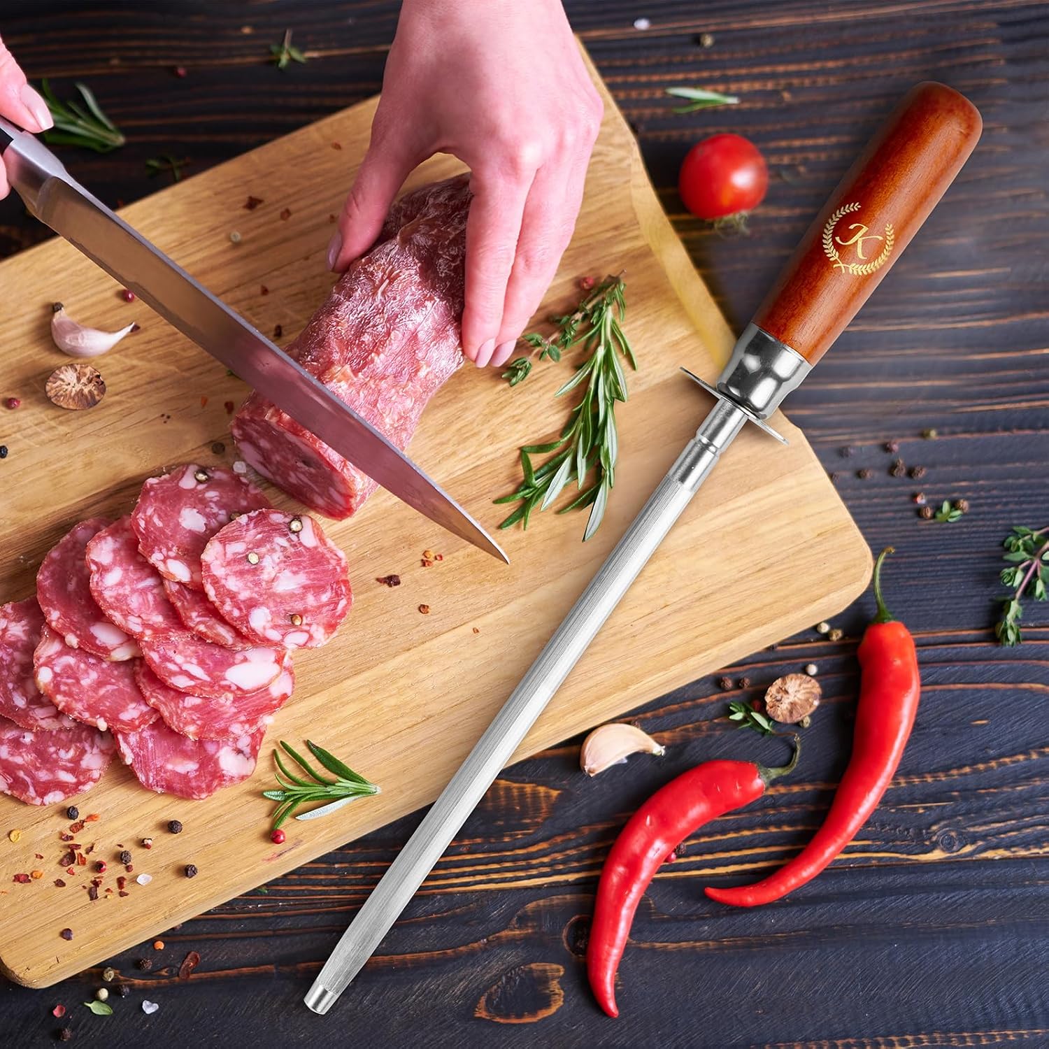 Knife Sharpener Rod, Kitchen Knives Sharpener Carbon Steel Professional Knife Sharpening Steel, Honing Rod with Hanging Holes (13 inches), K