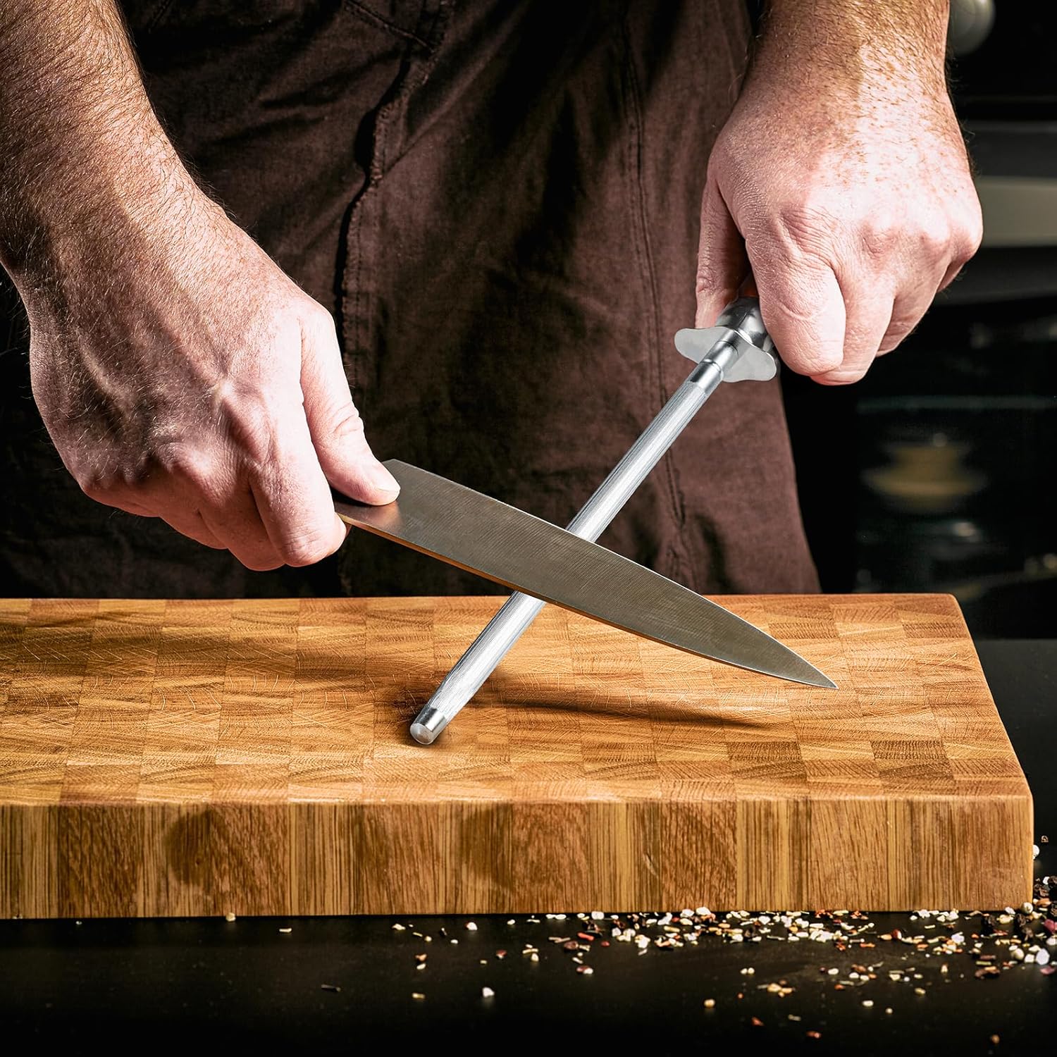Knife Sharpener Rod, Kitchen Knives Sharpener Carbon Steel Professional Knife Sharpening Steel, Honing Rod with Hanging Holes (13 inches), T