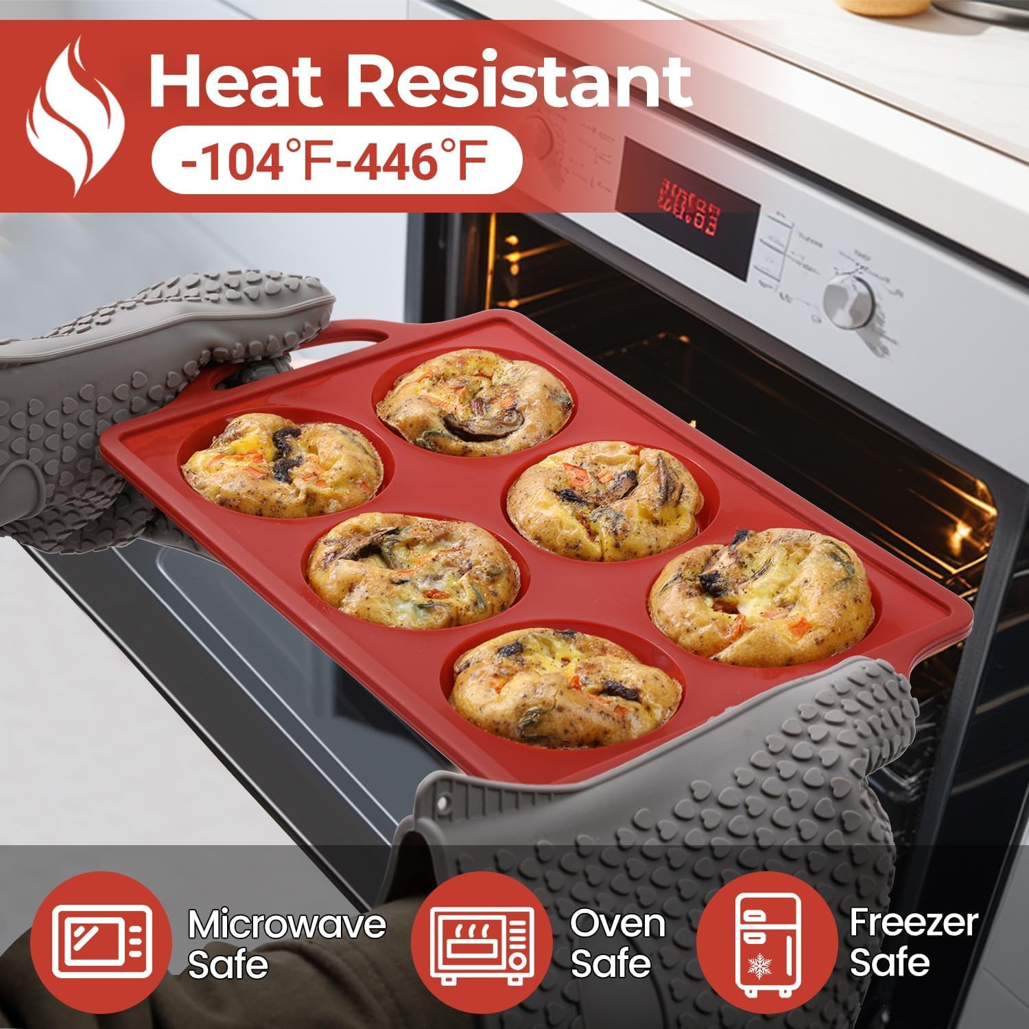 - Metal Reinforced Silicone Muffin Top Pan: The hidden stainless steel frame around the outer edge makes silicone egg molds more sturdy