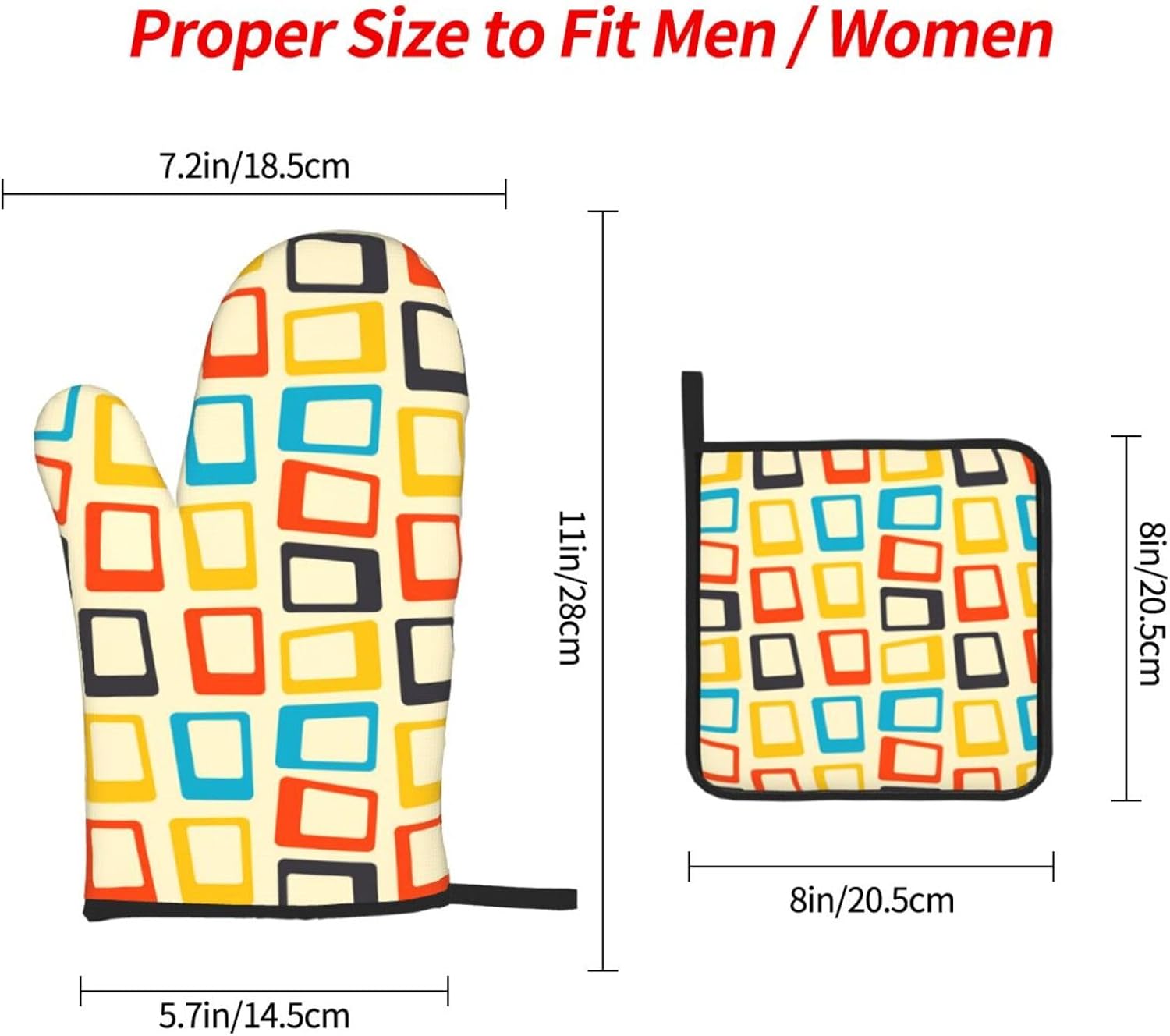 Mid Century Modern Oven Mitts and Pot Holders Sets of 3 Retro Heat Resistant Non Slip BBQ Gloves for Cooking Grilling Baking Kitchen Decor