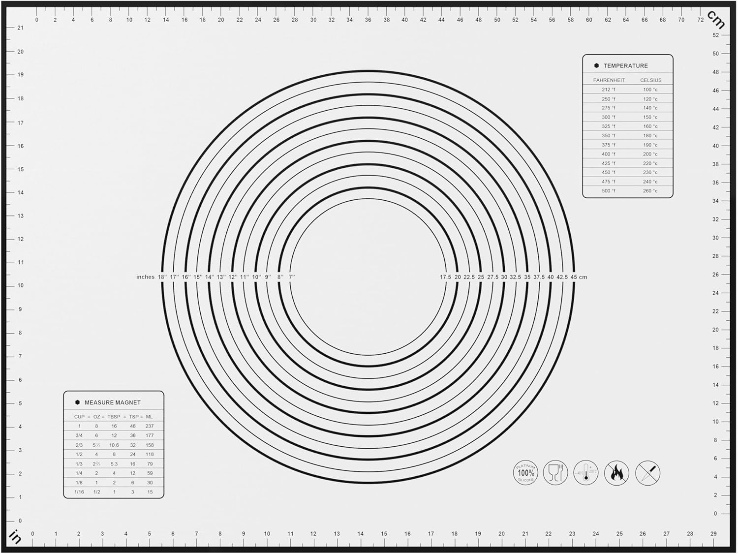 - 【Baking Measuring Helper】:Silicone Baking Mat provides accurate measurements for every home baker, making it easy to mark the size of the dough and making the baking process easier and terrier precise.