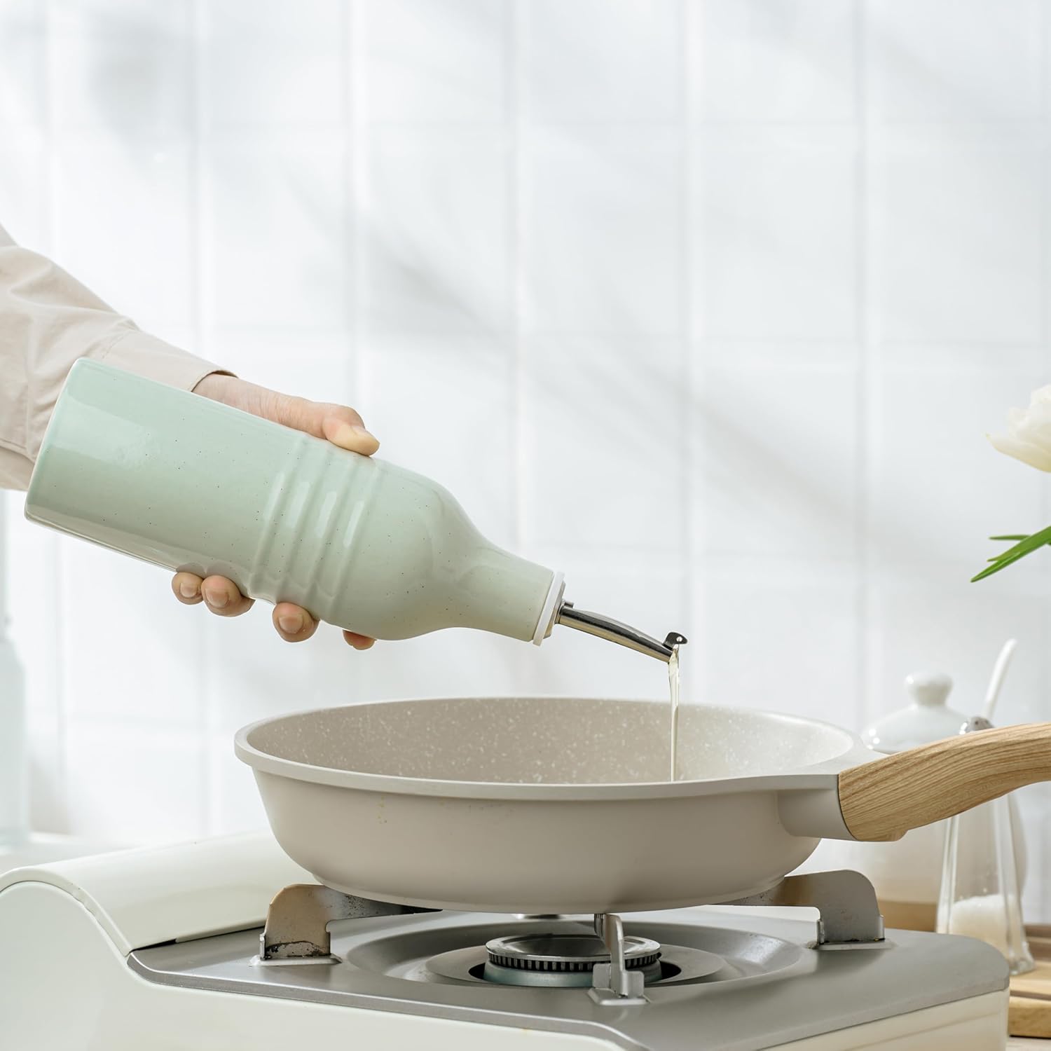 - KEEPS OIL FRESH - Exposure to light can cause olive oil to go rancid. This opaque olive oil dispenser bottle ceramic protects your olive oil or vinegar from harmful UV rays, keeping it fresh longer