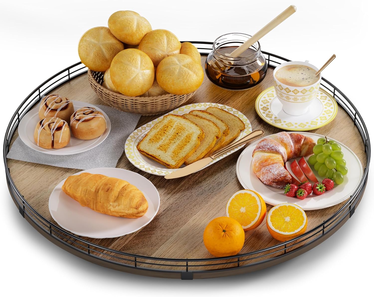 Acacia Wood 21" Lazy Susan Turntable Organizer for Table Top, Farmhouse Extra Large Round Lazy Susan for Serving Kitchen Countertop Cabinet for Charcuterie Centerpiece, Bathroom Vanity Tray Decor