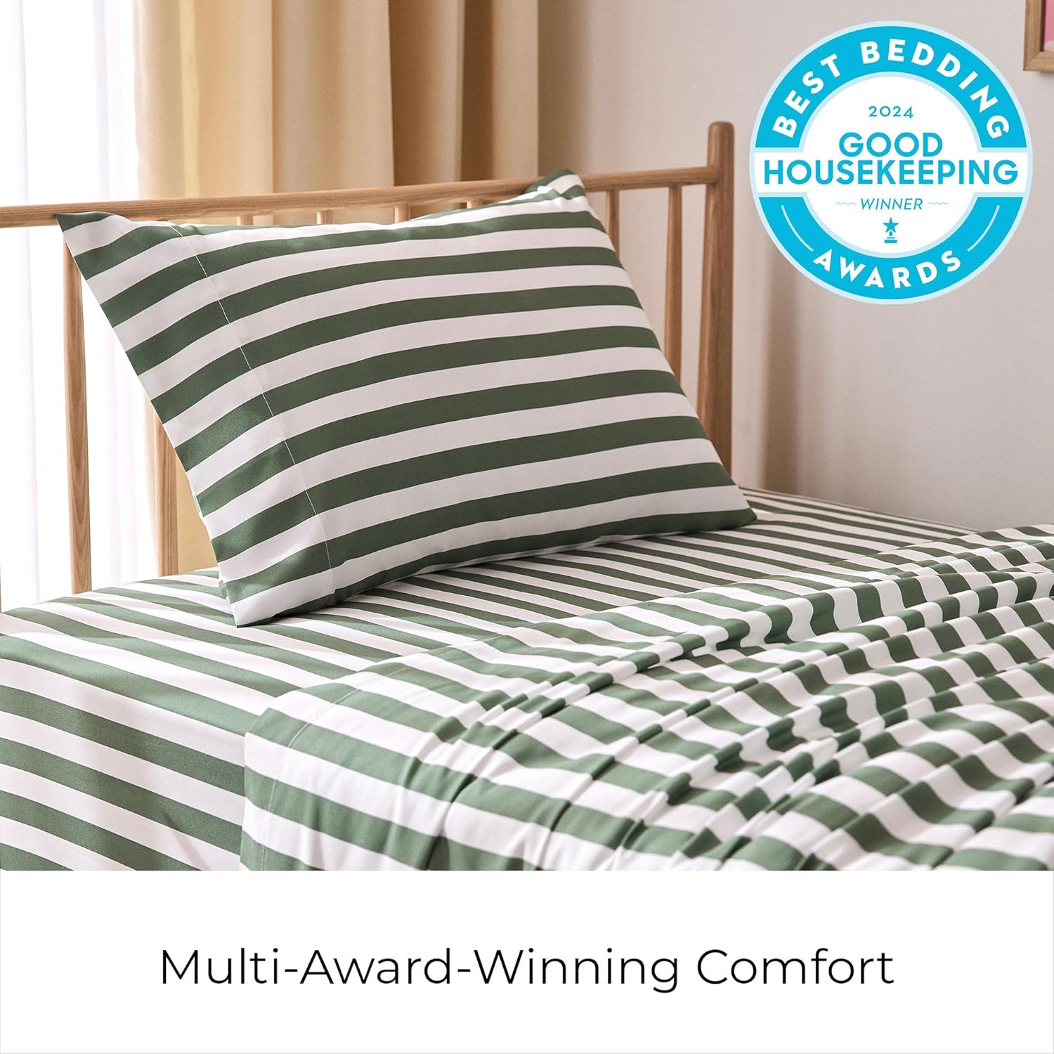 Mellanni Twin XL Sheets Set - 3 PC Iconic Collection Bedding - Hotel Luxury, Extra Soft, Cooling Bed Sheets - Wrinkle, Fade, Stain Resistant (Twin Extra Long, Oxford Stripe Sage)