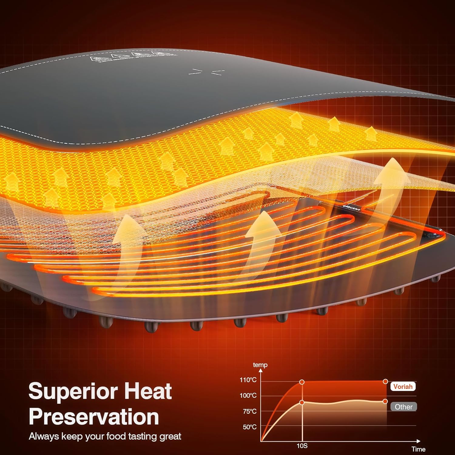 Warming Mat for Food, Voriah Electric Warming Tray with 99H Timer & 8 Temperature Settings, Foldable Food Warmer with °C/°F Switch, Keeps Food Warm at Buffets, Sabbath, Family Gatherings