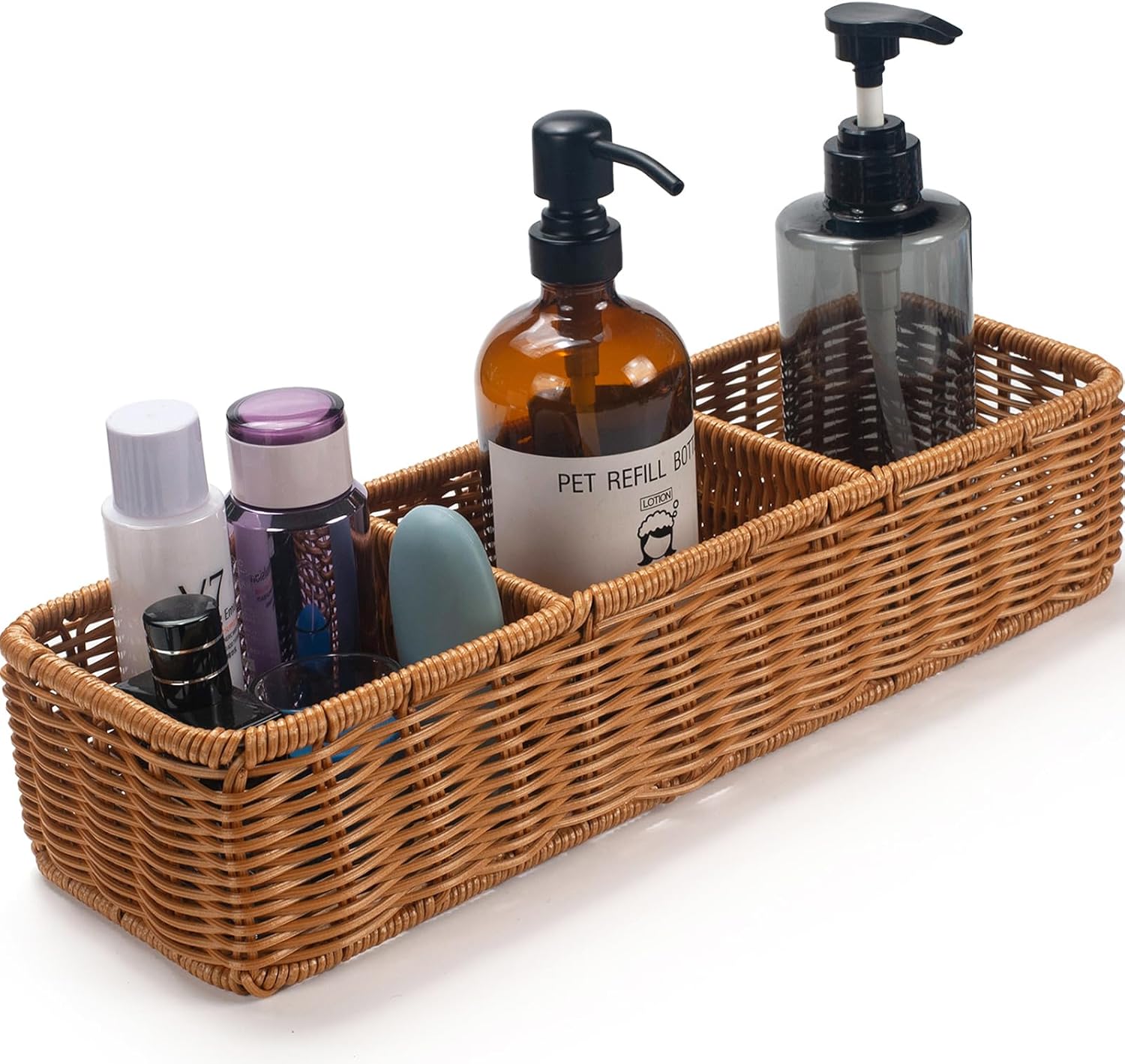 - 3 Sections Design: The woven bathroom basket is designed with three compartments, classified storage allows items to be stored in an orderly manner, which also makes it more faster to find the item you need.