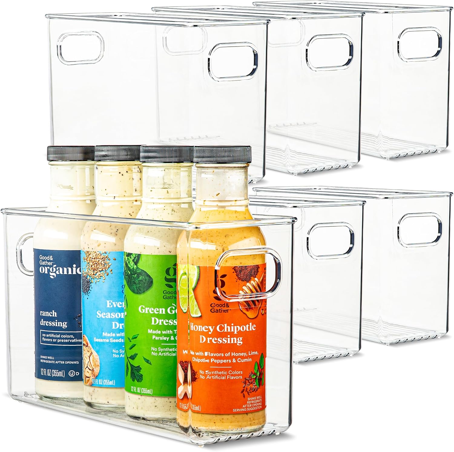 Plastic Food Storage 6 Pack Clear Container Bin with Handles for Organizing Kitchen, Pantry, Refrigerator, Freezer, Pantry, Cabinet, Closet, Bathroom. 10”x4”x6”