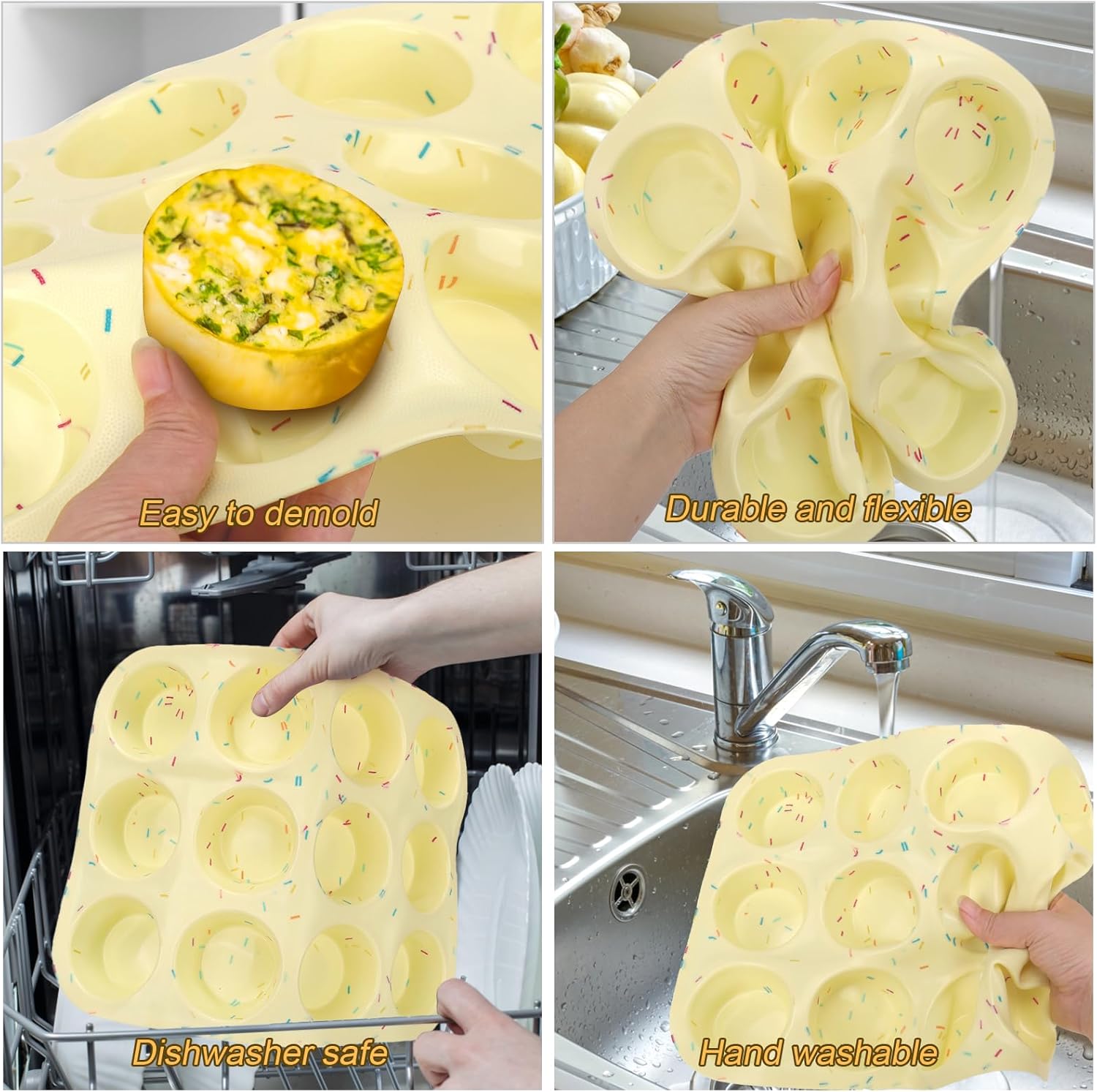 - 12-Cavity Egg Bite Silicone Mold : This 12-cavity egg bite silicone mold stands out for its quick and efficient production ability, which not only serves breakfast for the whole family, but also shines at weddings, company parties, and other occasions, providing guests with a delicious egg bite breakfast. Whether it's a family dinner or a social event, it's your indispensable kitchen helper