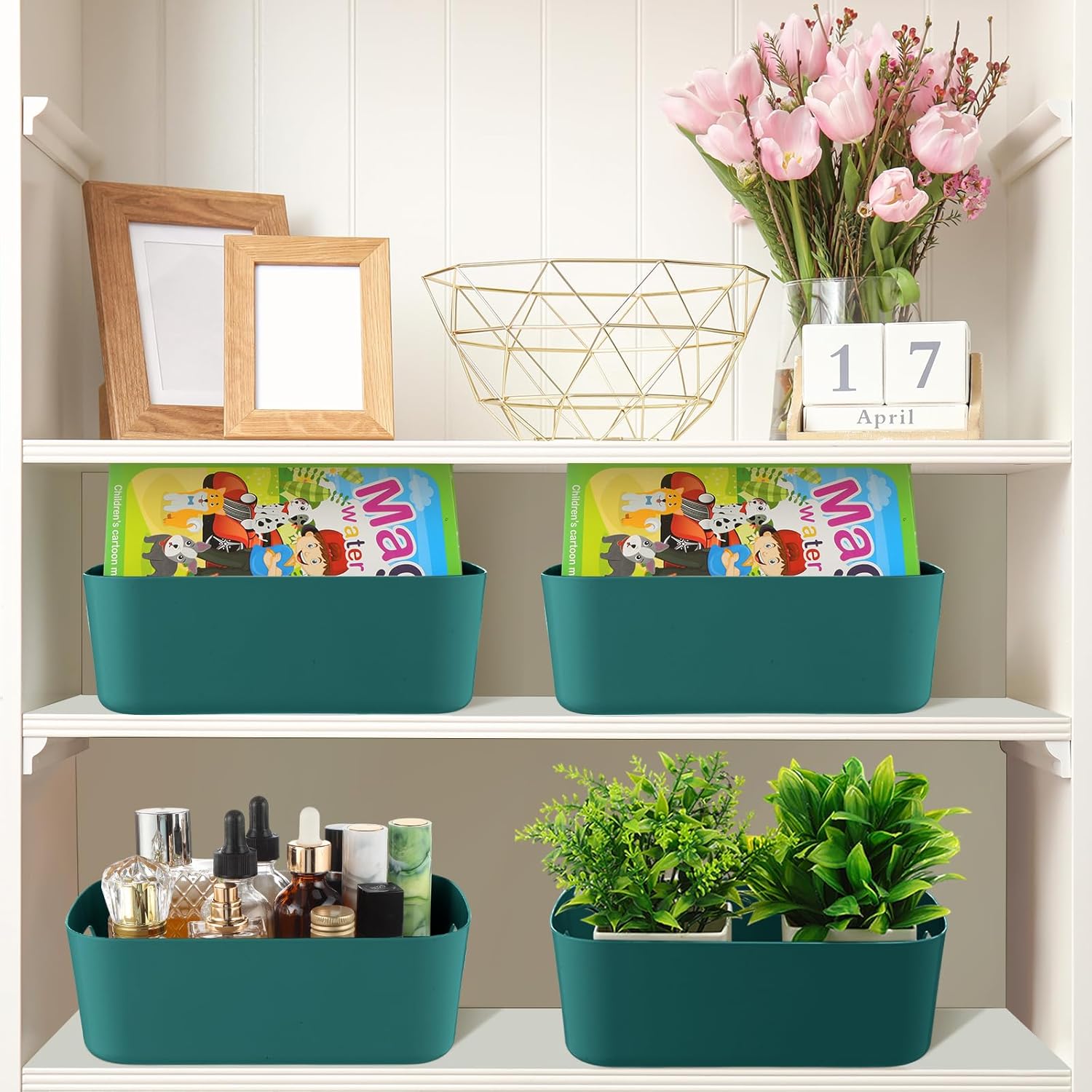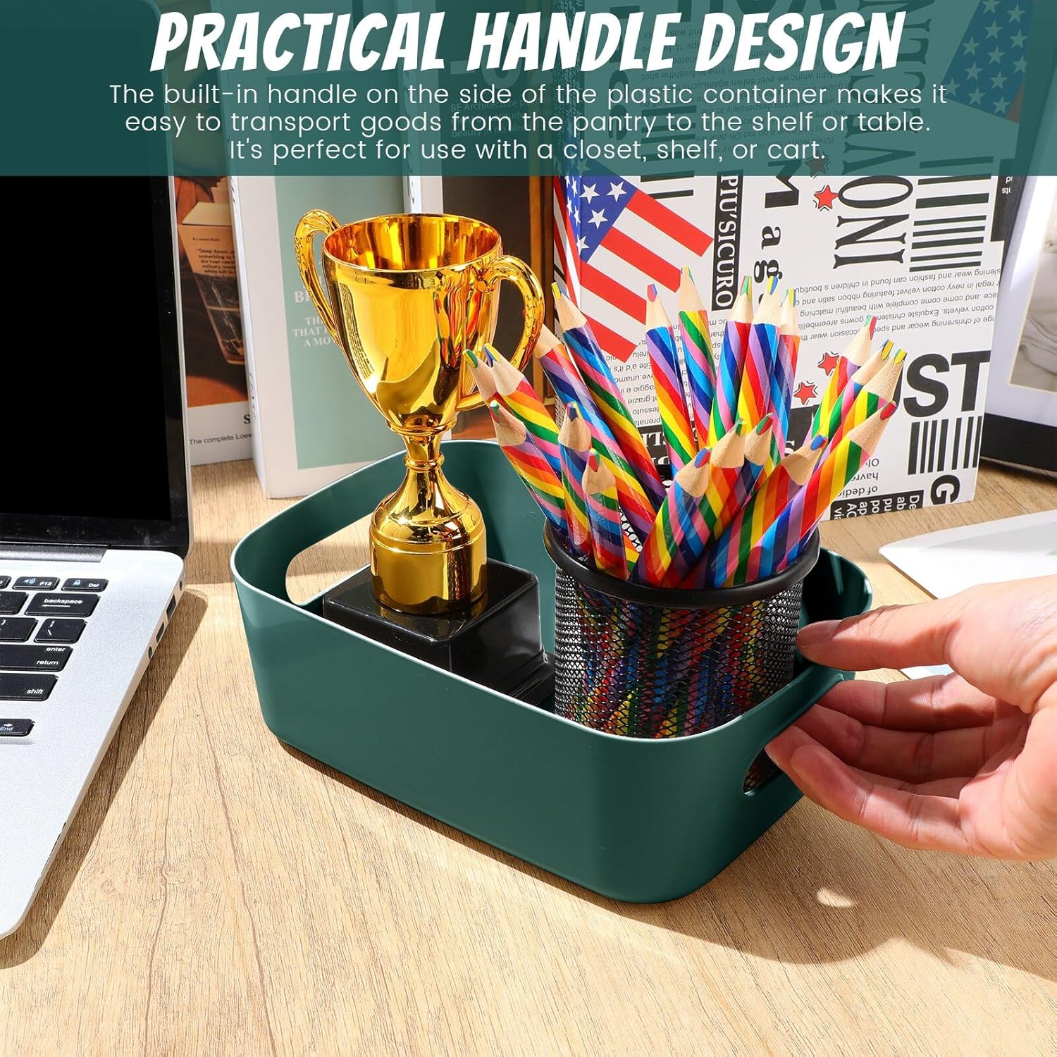- Multipurpose Storage Bin Set: you will receive 10 pieces of green plastic storage bins with handles, the ample quantity can certainly meet your daily storage requirements and classification needs, which can hold a lot of things, maximizing your space and making your home tidier and cleaner