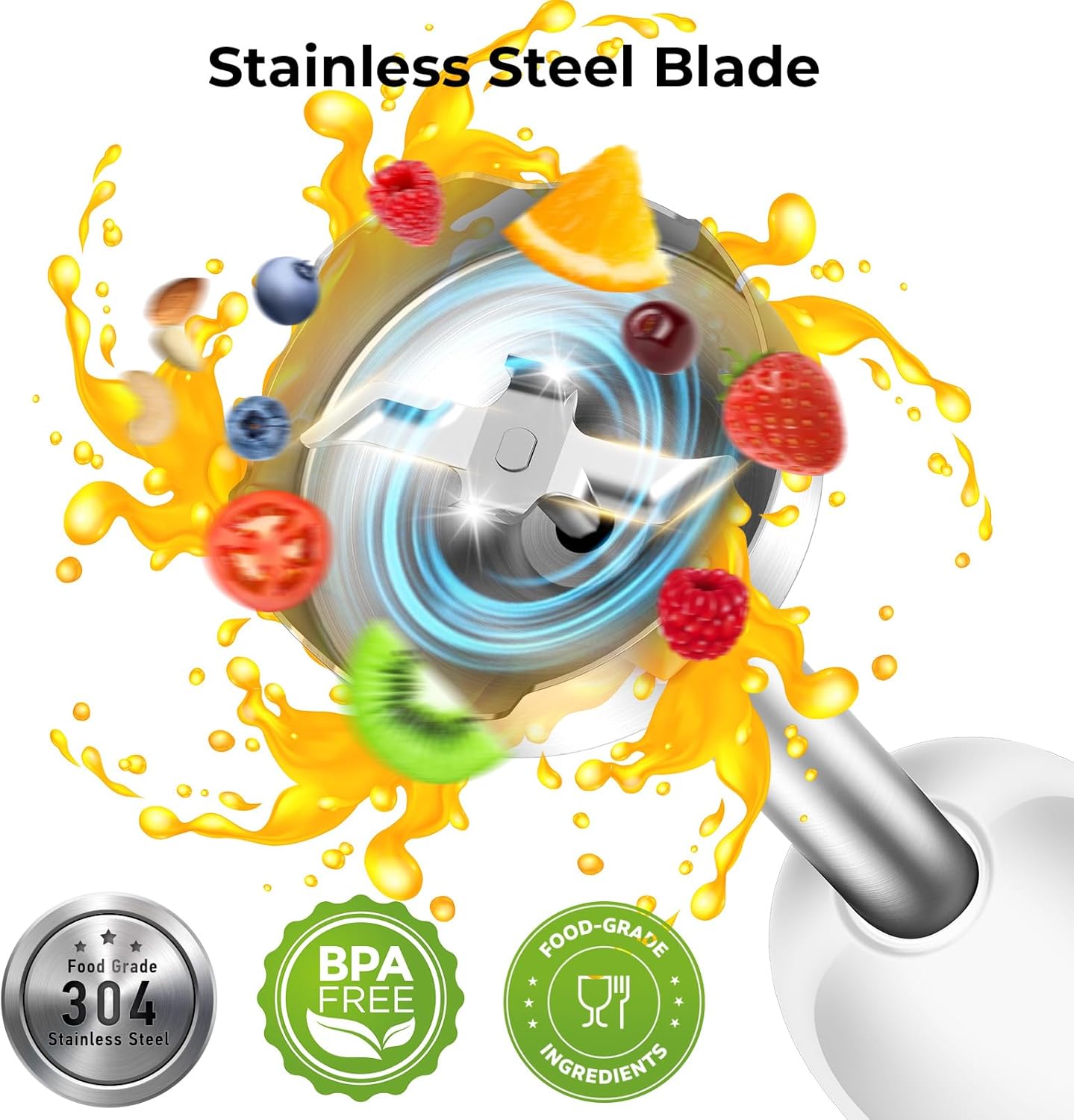 - Versatile 5-in-1 Functionality: This immersion hand blender is designed to be a true kitchen multitasker, combining the functions of a blender, whisk, chopper, and milk frothers tool into one compact device. Whether youโre whipping up a creamy coup, blending a refreshing smoothie, making silky purees, or preparing nutritious baby food, this all-in-one tool simplifies your cooking process and reduces the need for multiple appliances.