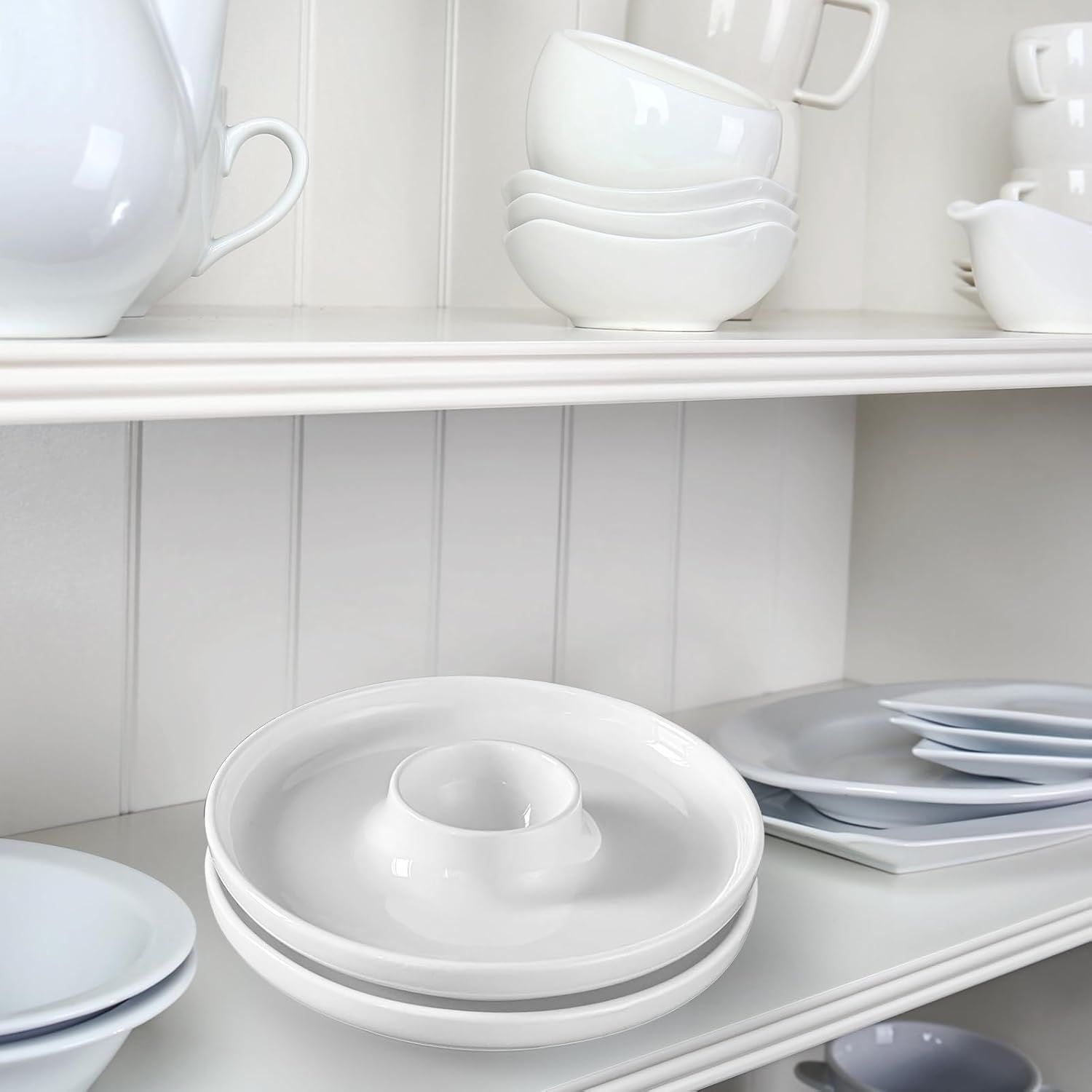 Cinf EggHolder & Spoon Set 2 Ceramic Egg Holders + 2 SS Spoons Breakfast Plate White 5.5'' Food Container Egg Tray Dinner Serving for Hard Boiled Eggs, Easter & Deserts Kitchen