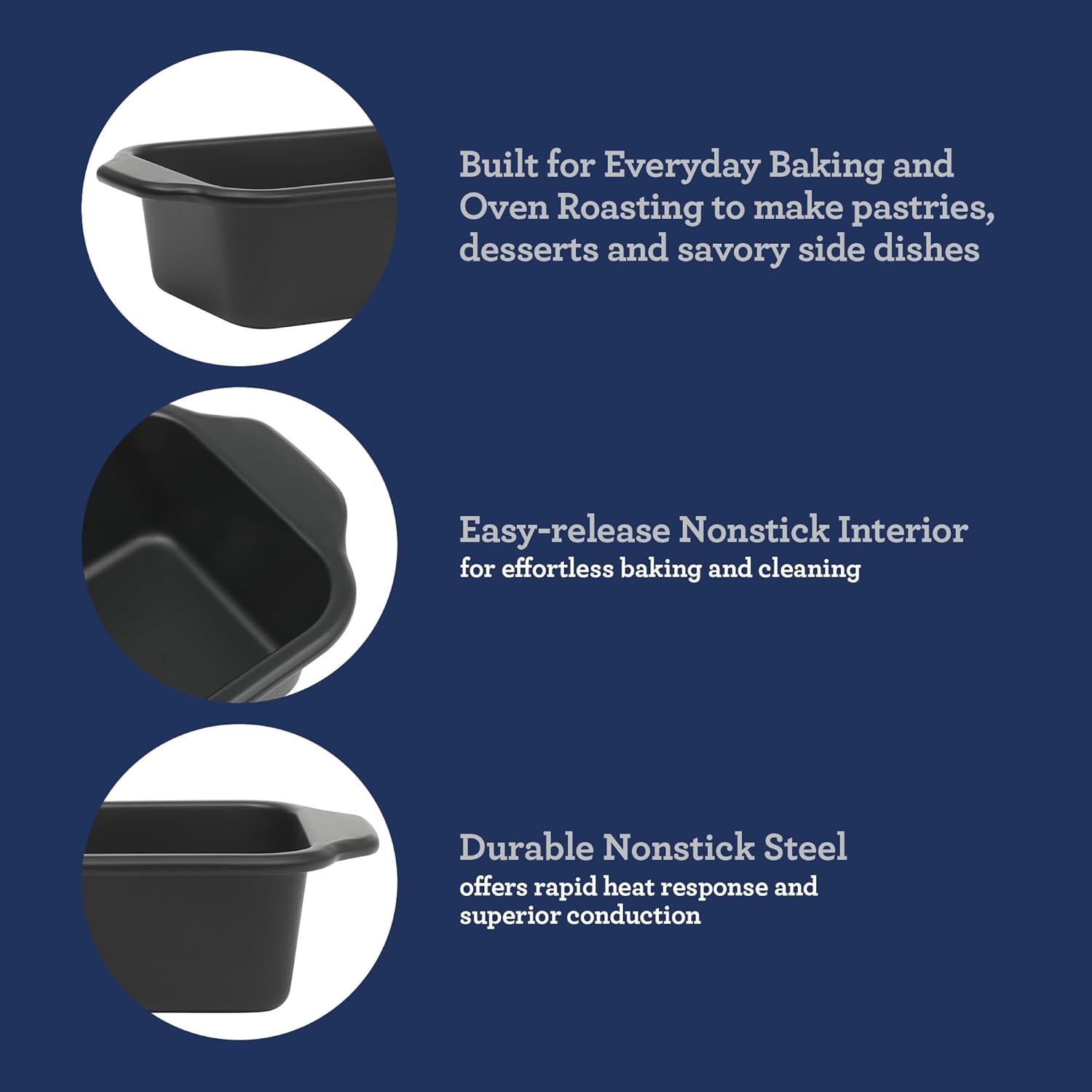 - EASY-RELEASE NONSTICK PERFORMANCE: Perfect for making pastries, desserts and side dishes, this loaf pan is easy to clean and is designed to everyday use