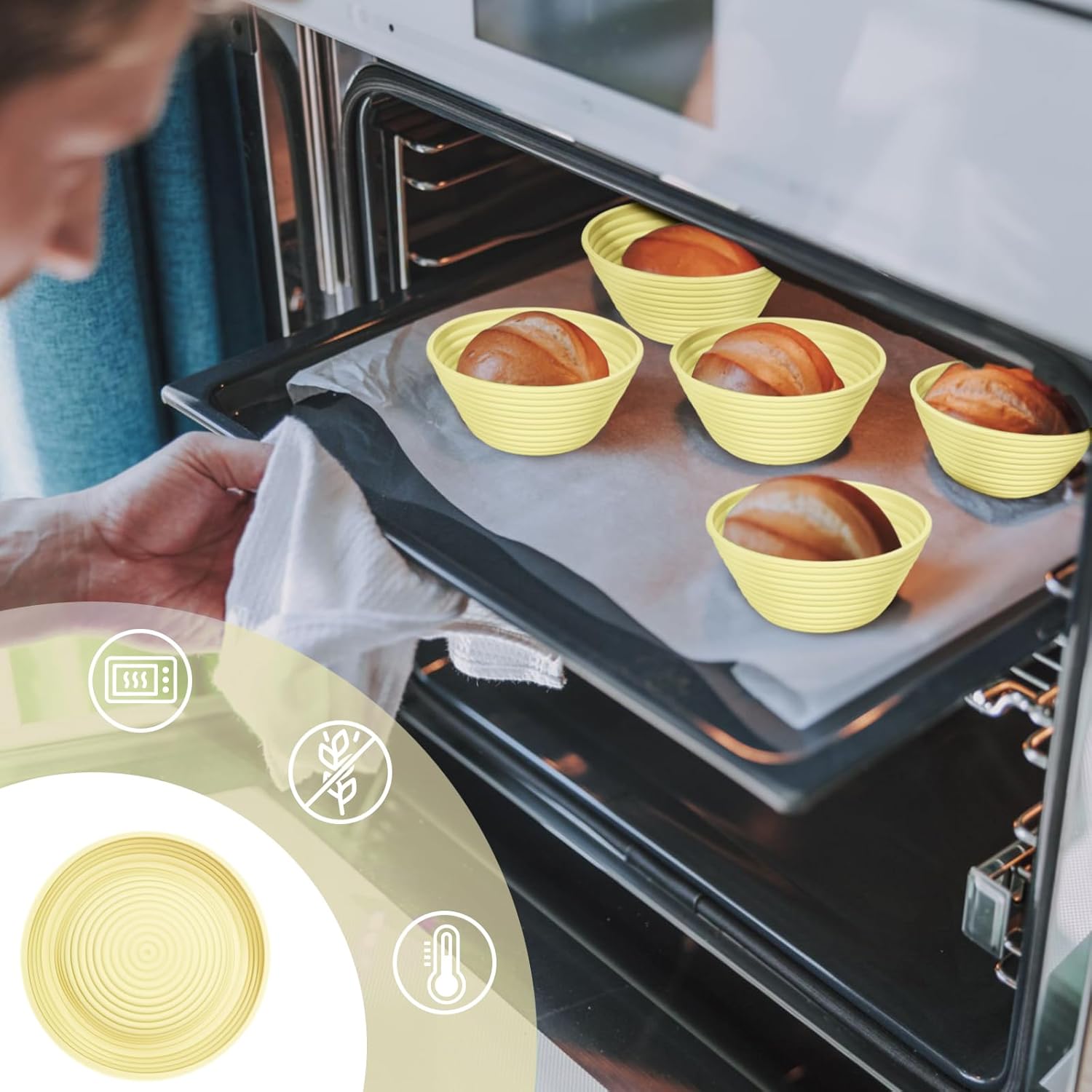 - Elevat e Your Baking: Our premium silicone bread proofing baskets outshine traditional rattan ones. The sourdough starter kit is made from top-grade, BPA-free silicone, our bread baskets handle temperatures from -20°F to 440°F (-30°C to 226.15°C), ideal for fridge proofing and direct oven use. Safe, durable, and versatile—transform your baking experience today