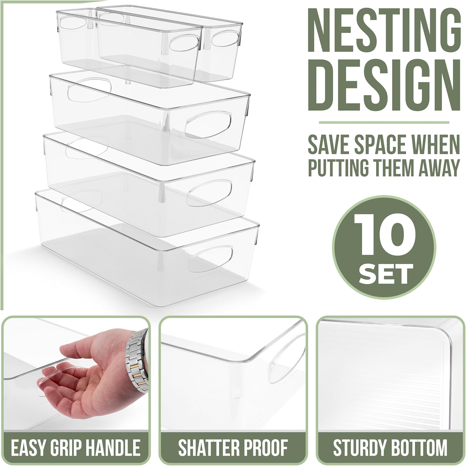Sorbus Clear Plastic Organizing Bins 10-Pack, Clear Bins, Refrigerator & Pantry Organizer