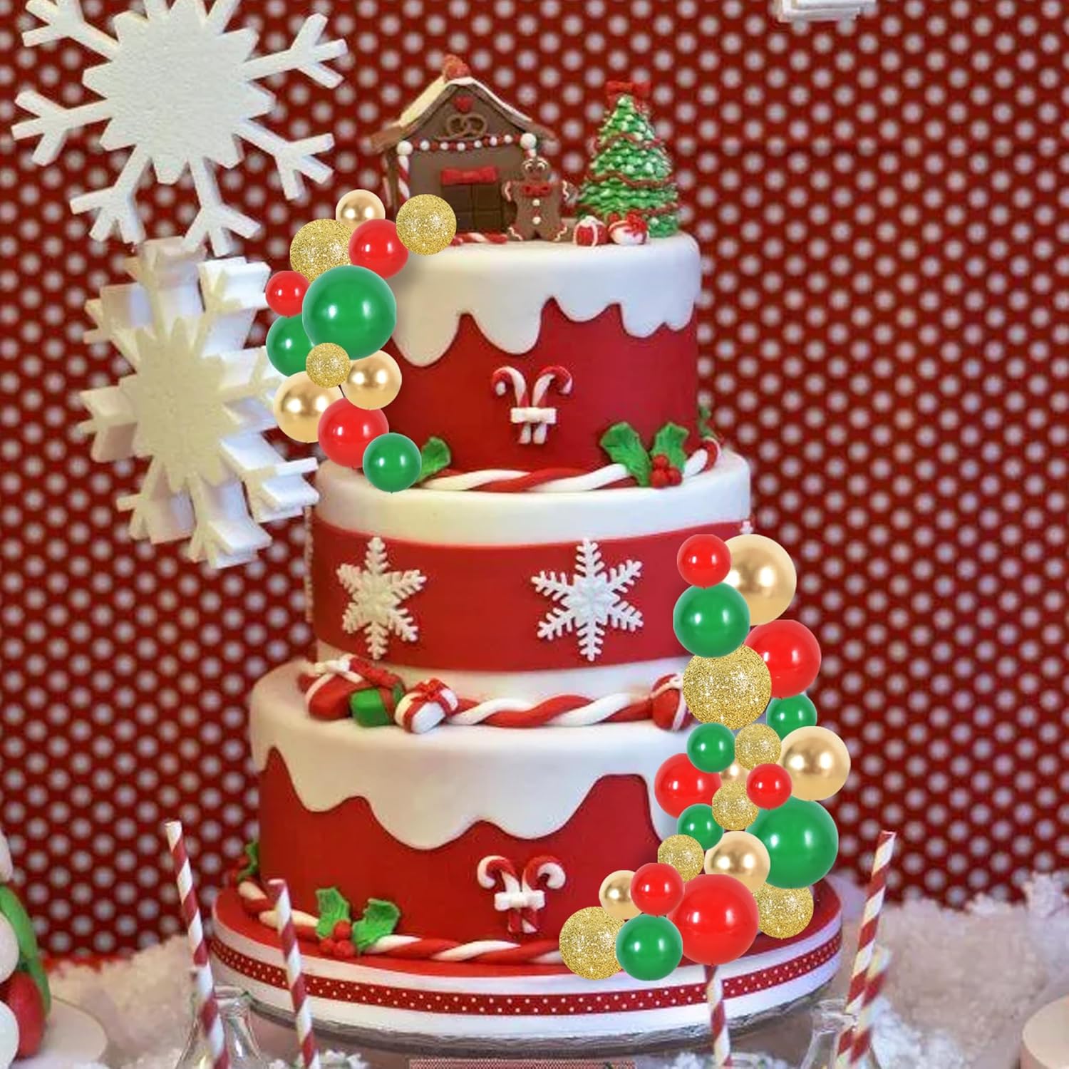 BEISHIDA 40 Pcs Ball Cake Toppers Mini Balls Cake Decorations Red Green Gold Silver Sticks Foam Balls DIY Cake Topper Insert Balls Cake Decorations for Baking Christmas Party Decorations