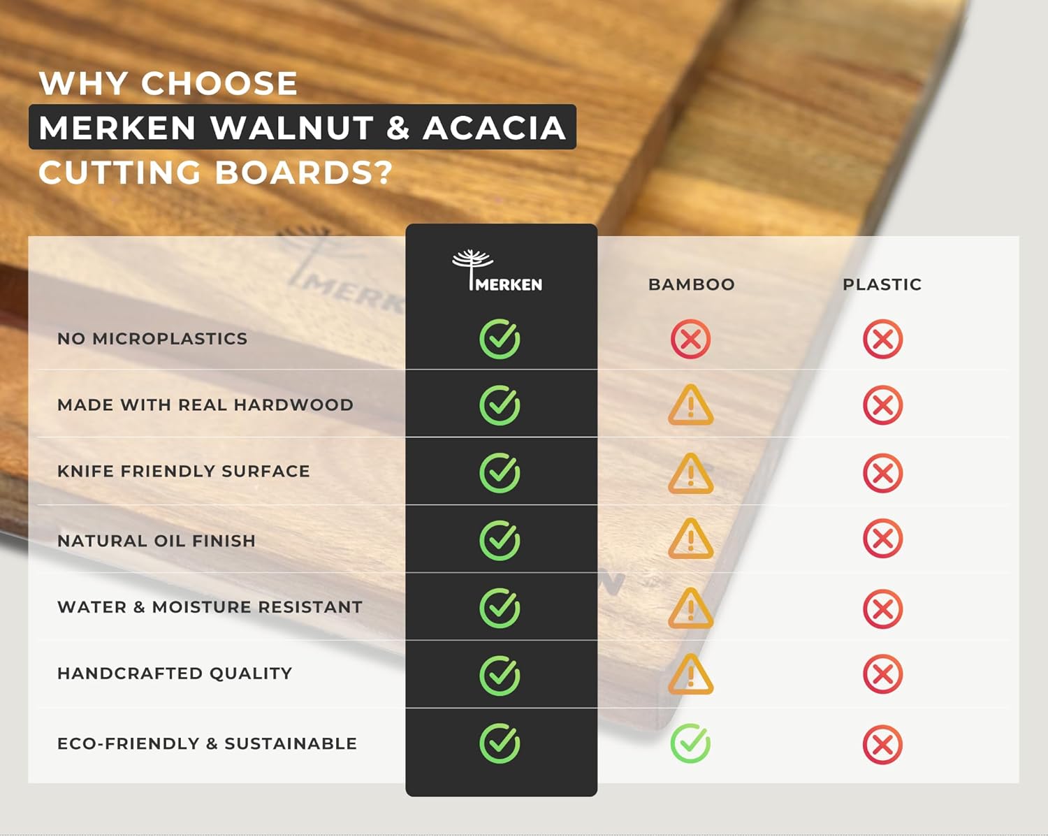 - Hygienic & Durable Kitchen Essential: The porous walnut wood surface naturally absorbs moisture, offering a hygienic option that is kind to knives. Its thick construction ensures long-lasting use, while the stylish design complements any kitchen décor.