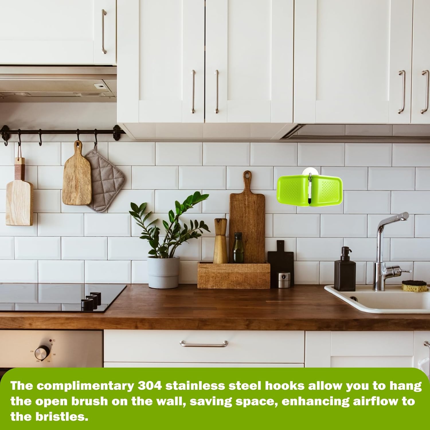 - 【Easily Hang】When the brush is open, it is easy to be hang with the high quality hooks of 304 stainless steel in the set