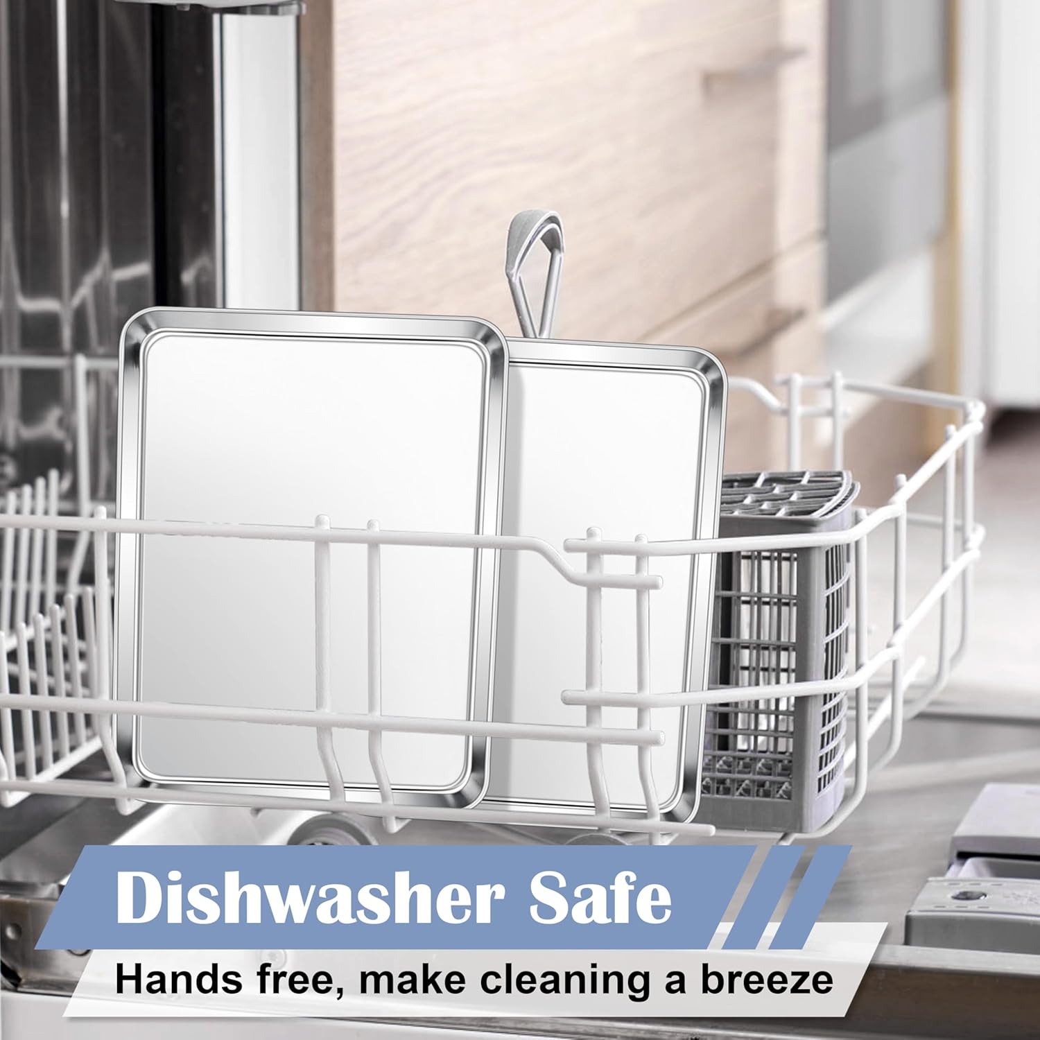 E-far Stainless Steel Baking Sheets, 12.4” x9.7” x 1” Baking Cookie Sheets Pans for Oven, Non-toxic Metal Trays for Cake Cookies, Healthy & Rust Free, Mirror Finish & Dishwasher Safe, 2 Pack