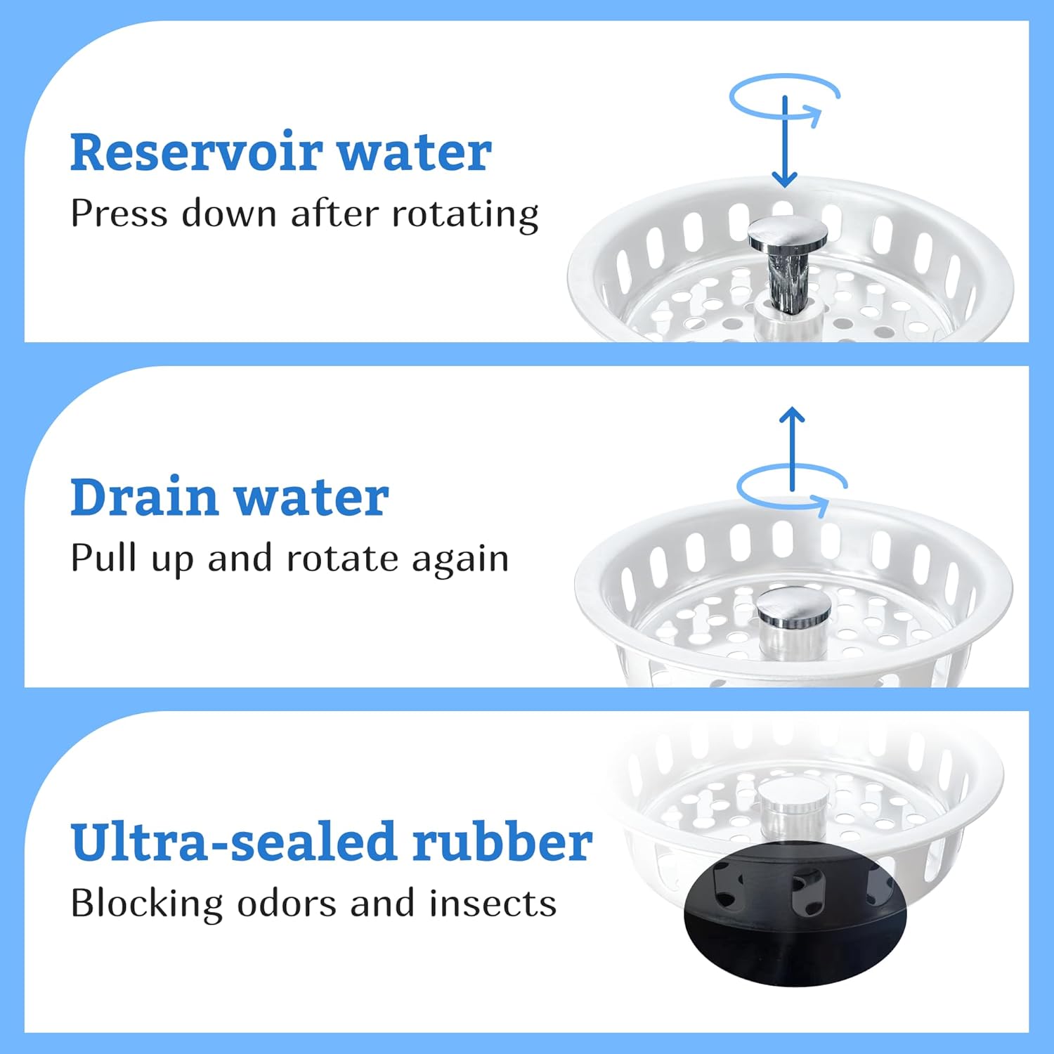 - SIZE: This kitchen sink strainer fits most standard 3-1/2 inch diameter sink opening. The rim diameter of this strainer is 4.35 inch, and height is 2.22 inch. The basket is 0.79 inch tall.