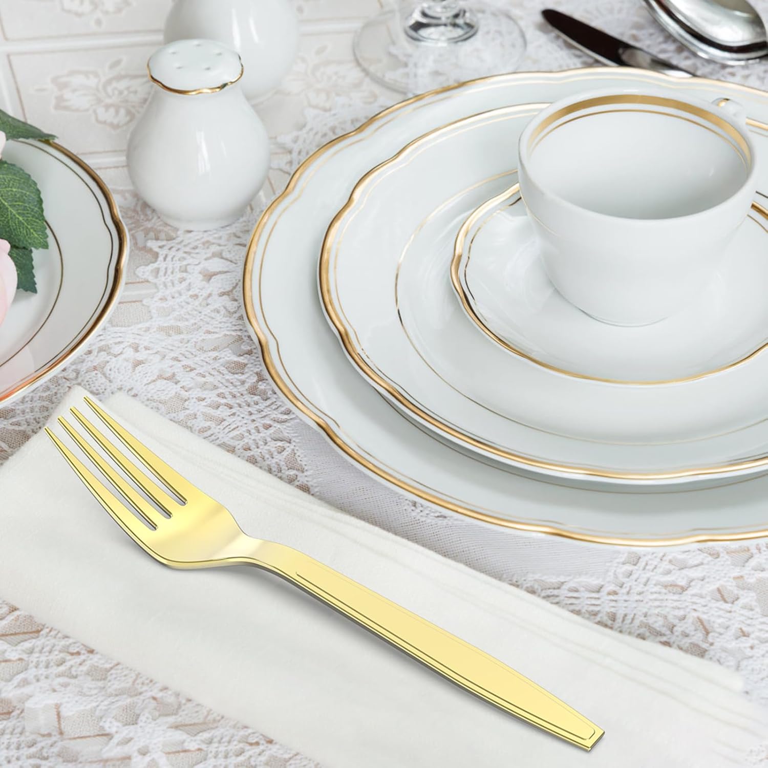 • 【Dispose or Resuse】: These strudy and durable gold plastic forks are suitable for disposable use. You can also HandWASH them to reuse, not suitable for dishwasher, microwave and oven.
