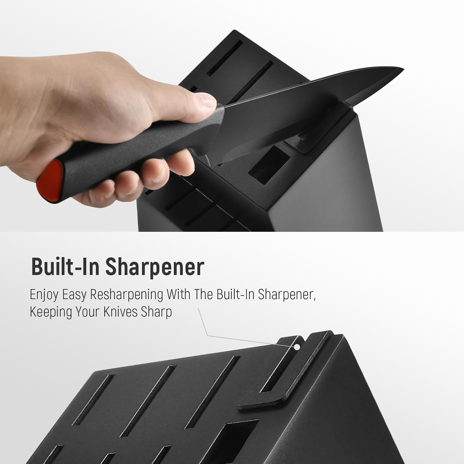 15-Piece Professional Kitchen Knife Set with Block – Built-in Sharpener, Anti-Slip Handles, Non-Slip Base – Effortless Cooking Tools for Chefs & Home Cooks (Black Red)