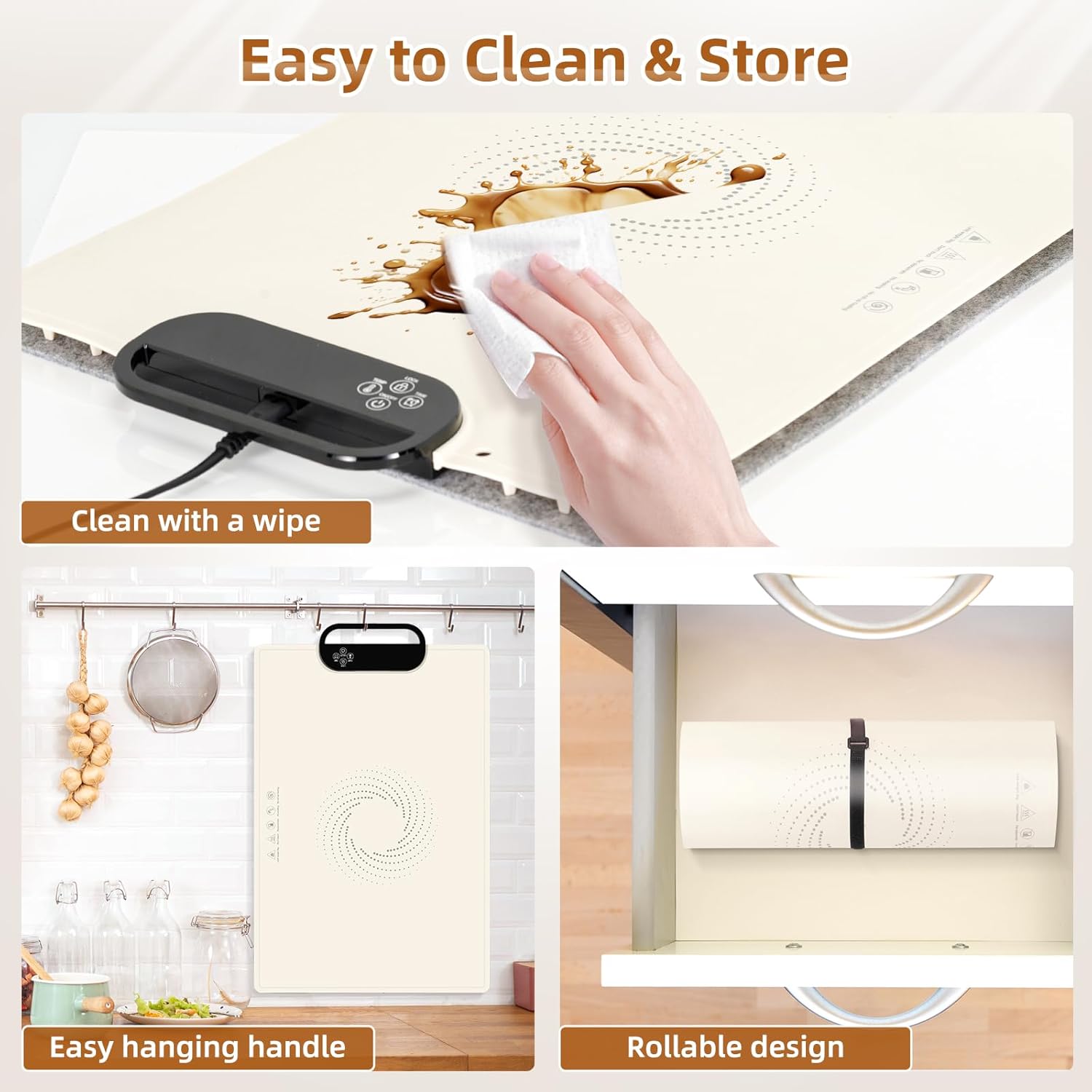 - [Multi-tasking Mat]: Our warming mat for food suits metal, ceramic, stainless steel, glass, and enamelware. Besides warming food, it multitasks as a home assistant—fermenting dough, defrosting, even heating face masks