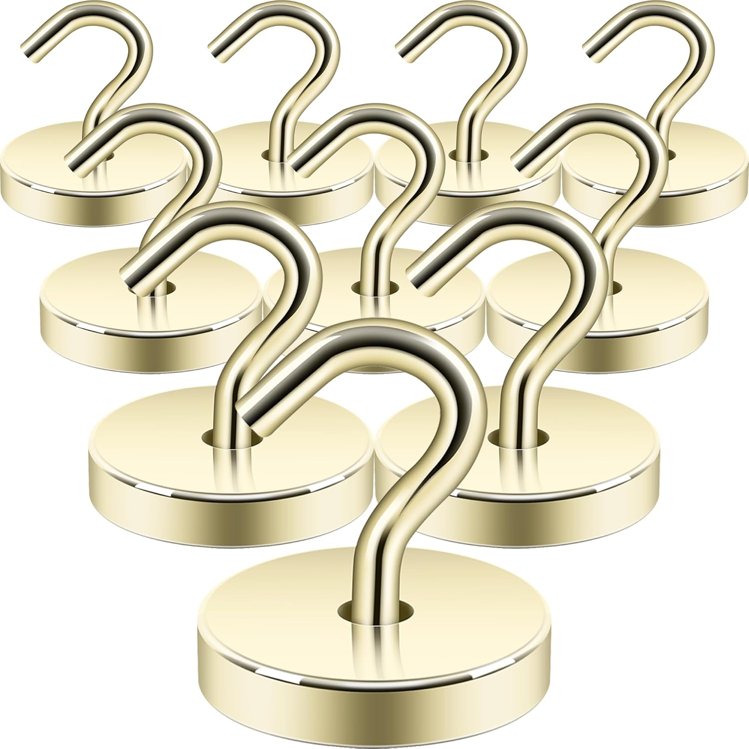 Neosmuk Magnetic Hooks, Cruise Ship Essentials, 120lb+ Heavy Duty Magnetic Hooks for Cruise Cabins, Refrigerator, Grill, Hanging, and Travel | Extra Strong Must-Haves Magnet Hook,Gold,Pack of 10