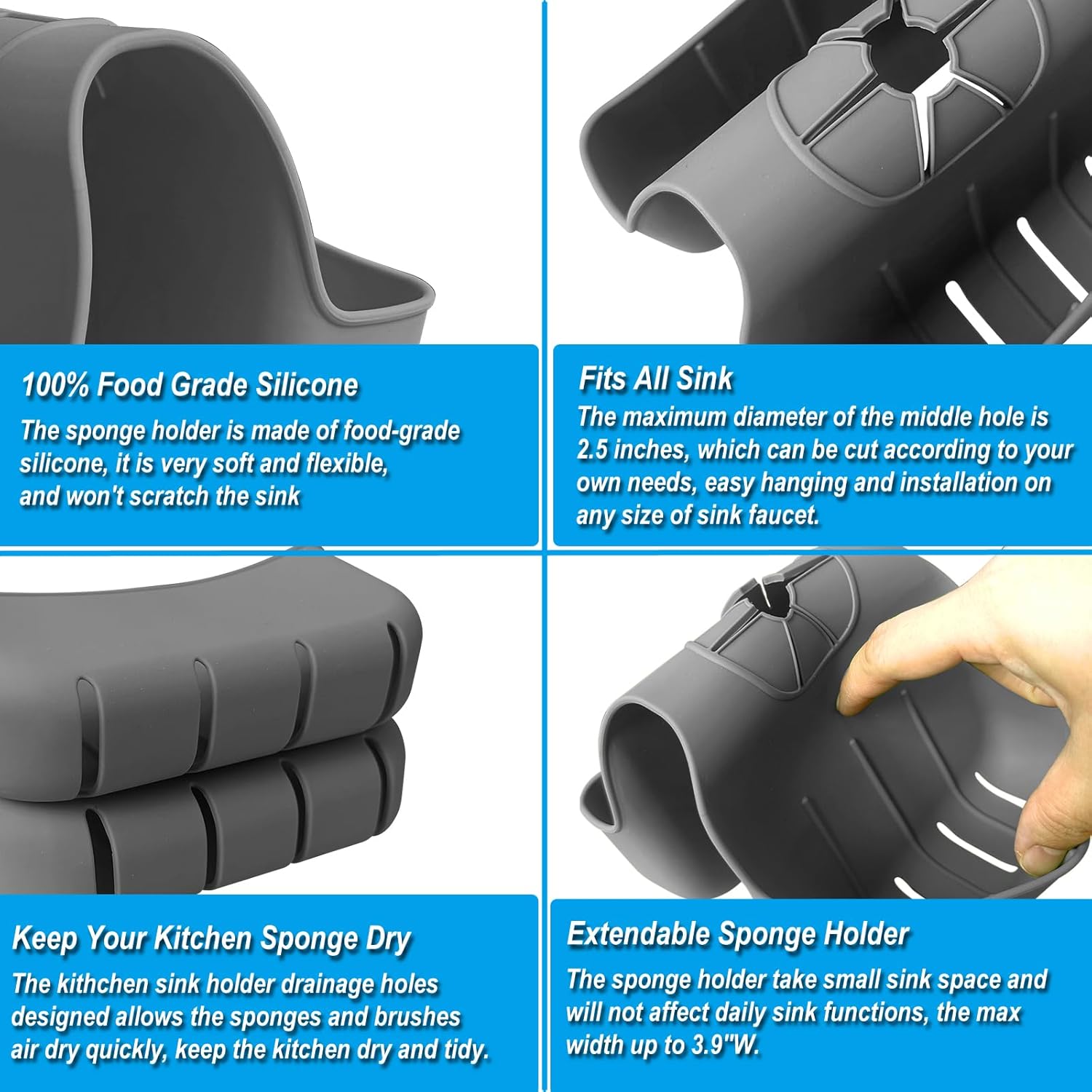 Sponge Holder for Kitchen Sink, Silicone Sink Saddle Caddy Organizer Rack, Sponges Holder Over Faucet, Hanging Kitchen Organizer Accessories Rack Basket Dark Gray