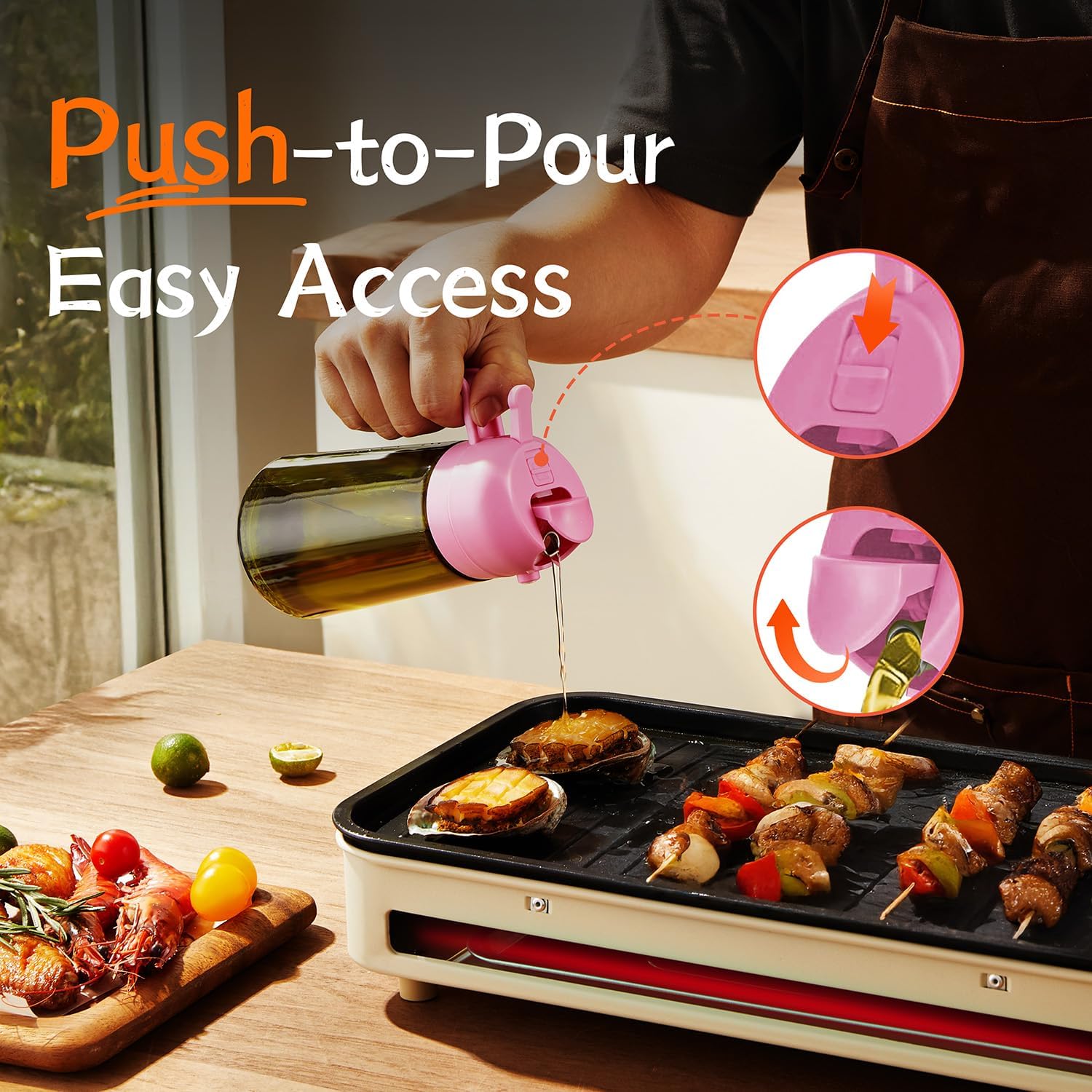 TrendPlain - Original 16oz/470ml Olive Oil Dispenser Bottle for Kitchen Gadgets and Air Fryer Accessories - Olive Oil Sprayer for Cooking w/Stickers - Bubblegum