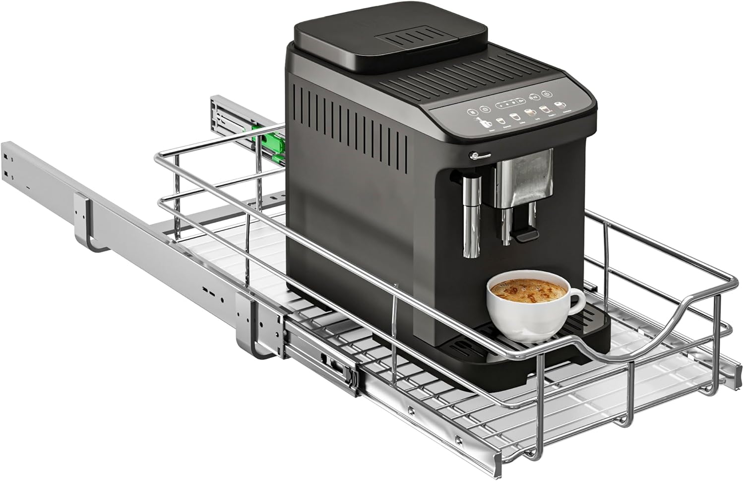 - 【Premium Material】This pull out cabinet shelf is made of high quality steel, heavy-duty and durable, load-bearing. The pull-out cabinet organizer offers a sturdy, noiseless, and smooth glide for easy access to kitchen essentials