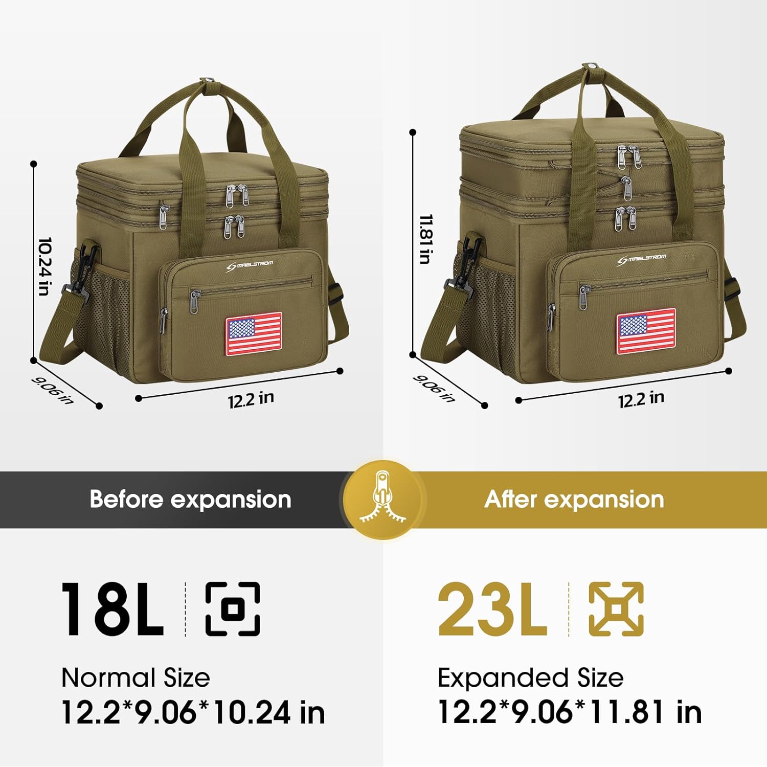 Maelstrom Tactical Lunch Box for Men, 23L Insulated Lunch Bag, Expandable Double Deck Cooler Bag, Lightweight Leakproof Tote Bag With Side Tissue Pocket, Suit For Men and Women, Khaki