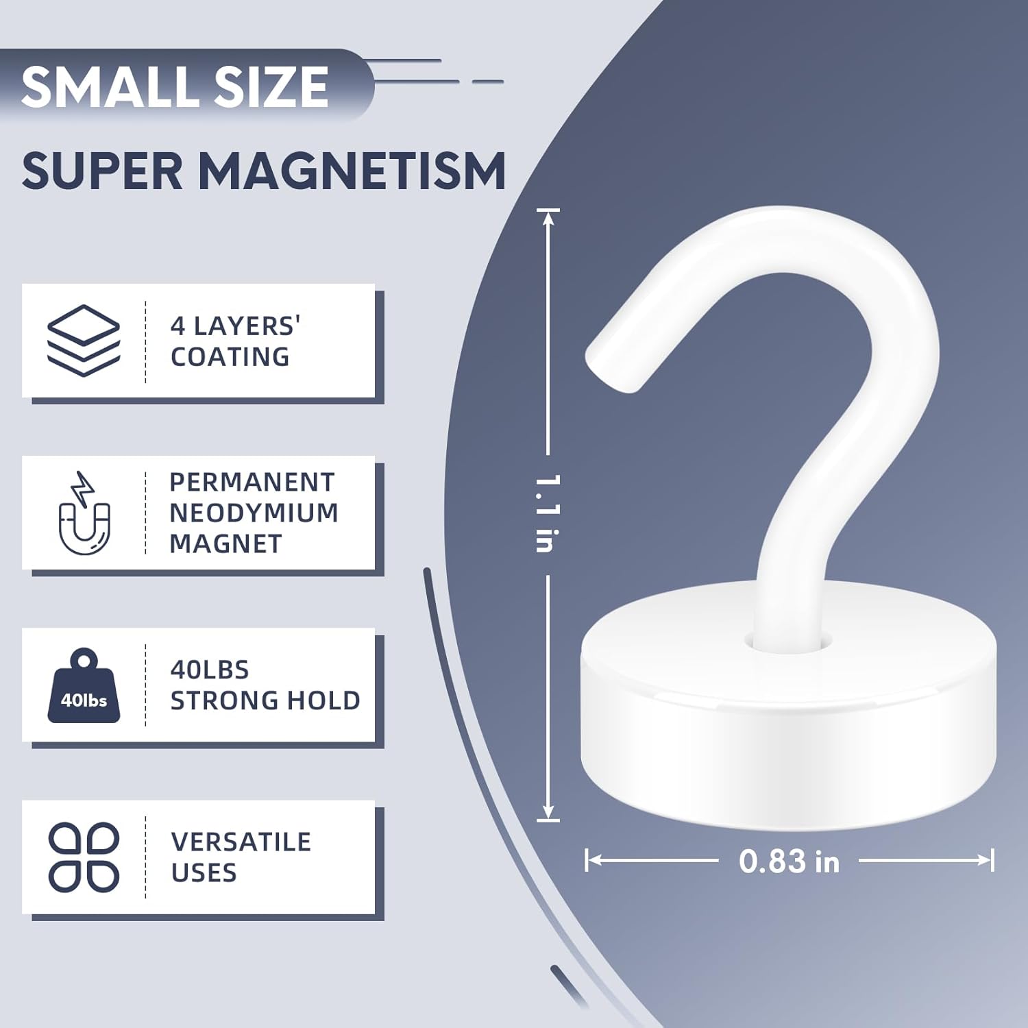 - ✔MAGIC STEEL TUBE DESIGN - Unique design of steel tube inside the base of magnetic hooks greatly increases the attractive force , especially on thin steel! It increase approximately 20% force comparing those none-tube magnets. it solves the problem of weak force on thin steel. Permanent magnetic hook with magic steel tube, strong magnetism lasts forever!