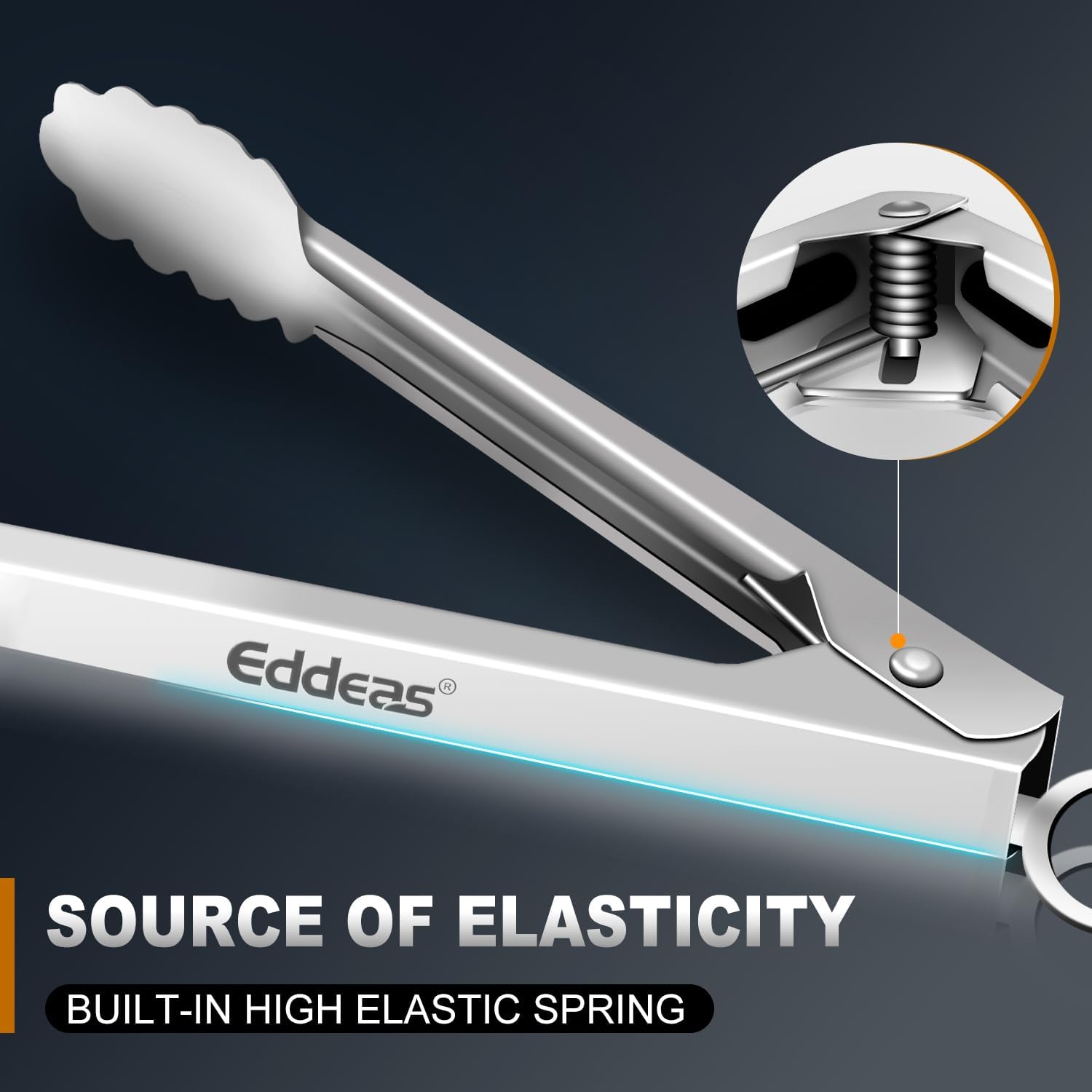 - MULTIPLE APPLICATION - Perfect for everyday kitchen tasks or outdoor use, whether you use them as salad tongs, grill tongs, need reliable metal tongs to grab food from boiling water, or as a grill Turner or salad server, EDDEAS tongs will meet your needs for safety and stability.Size: 2pcs 12inch tongs