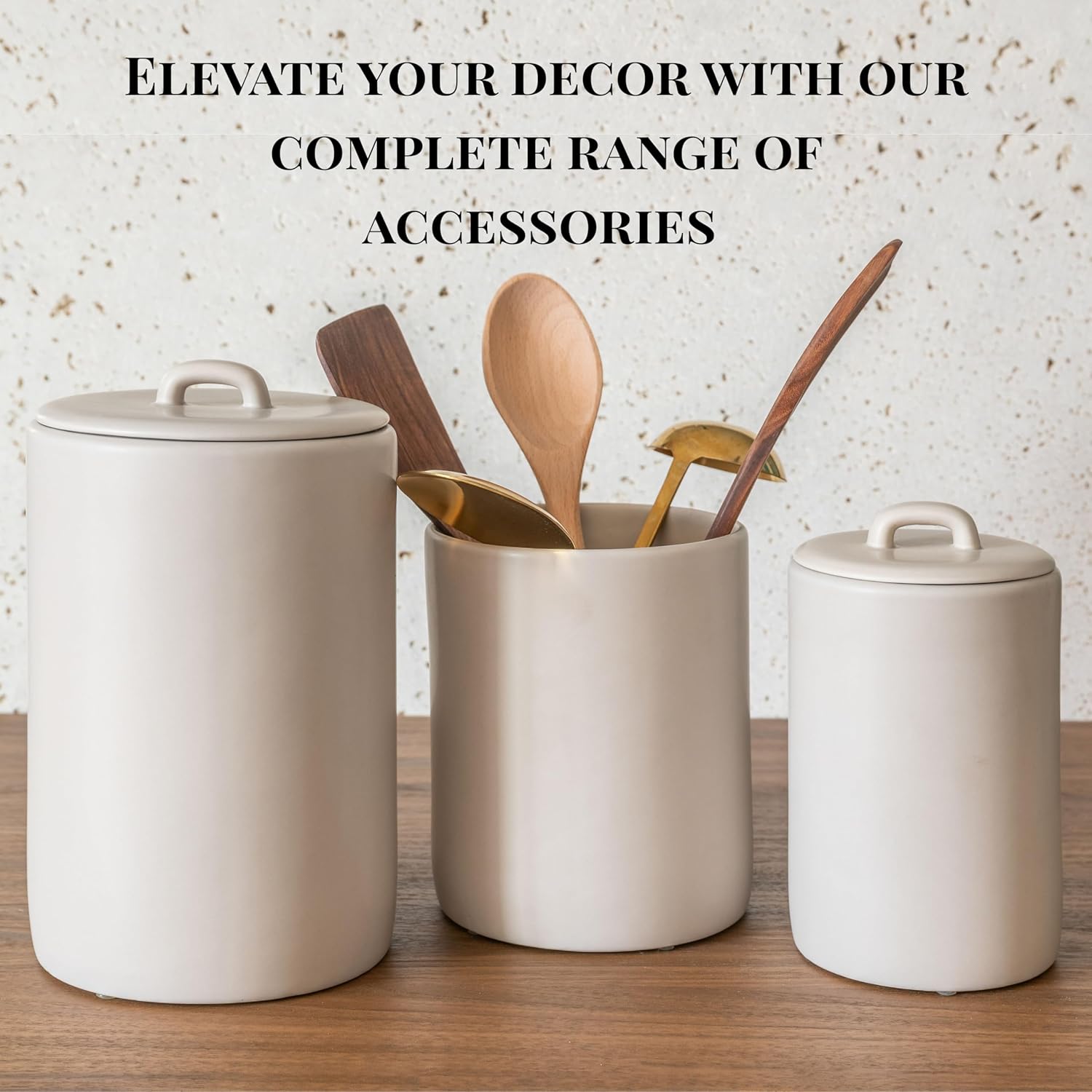 - ā PREMIUM CERAMIC WITH MATTE SMOOTH FINISH : Crafted from durable high-quality ceramic with a soft taupe color and smooth matte finished for a neutral and refined look. Ideal for kitchen organization