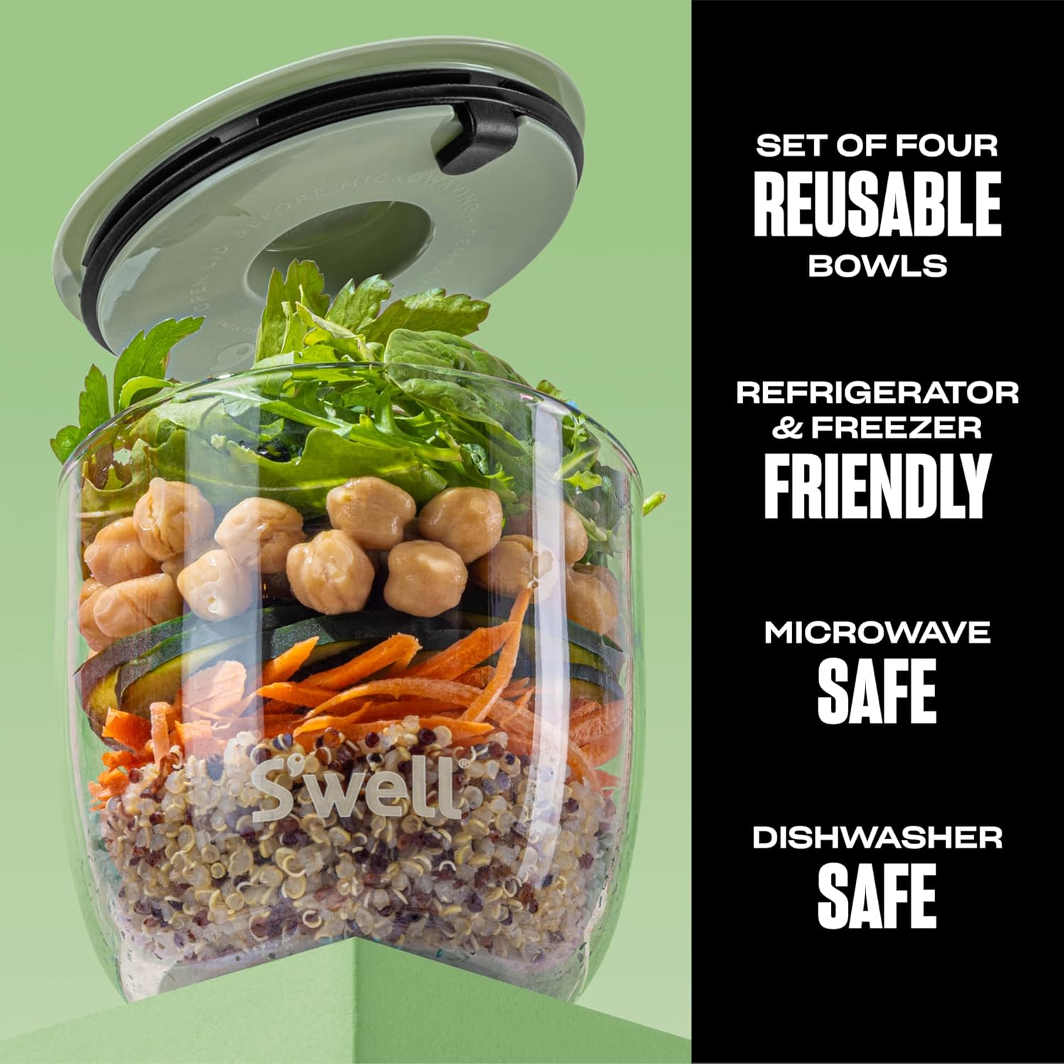 S'well 16oz Glass Prep Bowl Set of 4 For Easy Meal Prep, Vintage Pastels, Made From Durable Tempered Glass