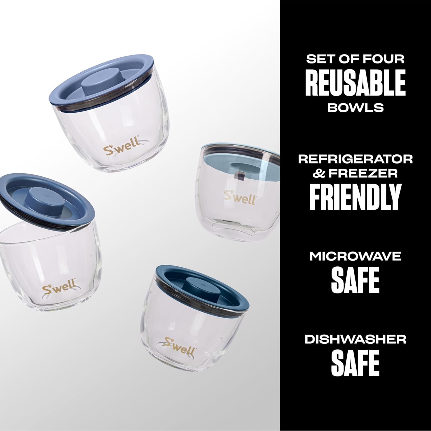 S'well 12oz Glass Prep Bowl Set of 4 For Easy Meal Prep, Coastal Blues, Made From Durable Tempered Glass, Nests Inside 21.5oz