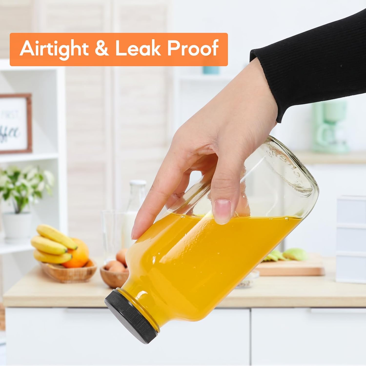 - Complete Set: 3 pack 16 oz square glass bottles with reusable BPA-free plastic lids; includes 1 soft sponge brush for scratch-free cleaning; 6 color-coded labels for quick content; secured with shock-absorbing foam packaging for safe delivery