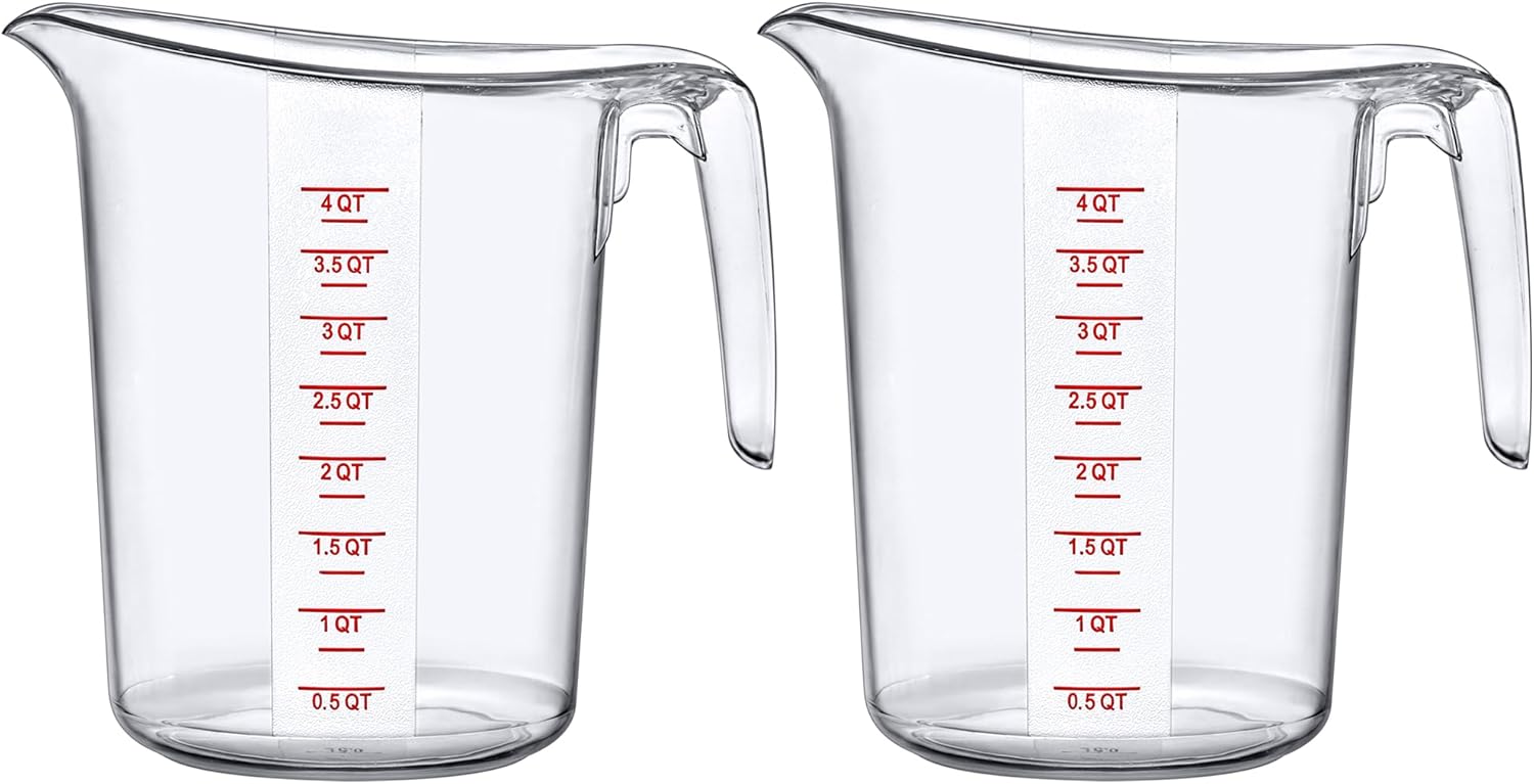Amazing Abby - Melissa - 128-Ounce Plastic Measuring Pitcher (2-Pack), 16-Cup (4-Quart) Food-Grade Measuring Jug, Unbreakable, Stackable, Dishwasher-Safe, Great for Oil, Vinegar, Flour, and More