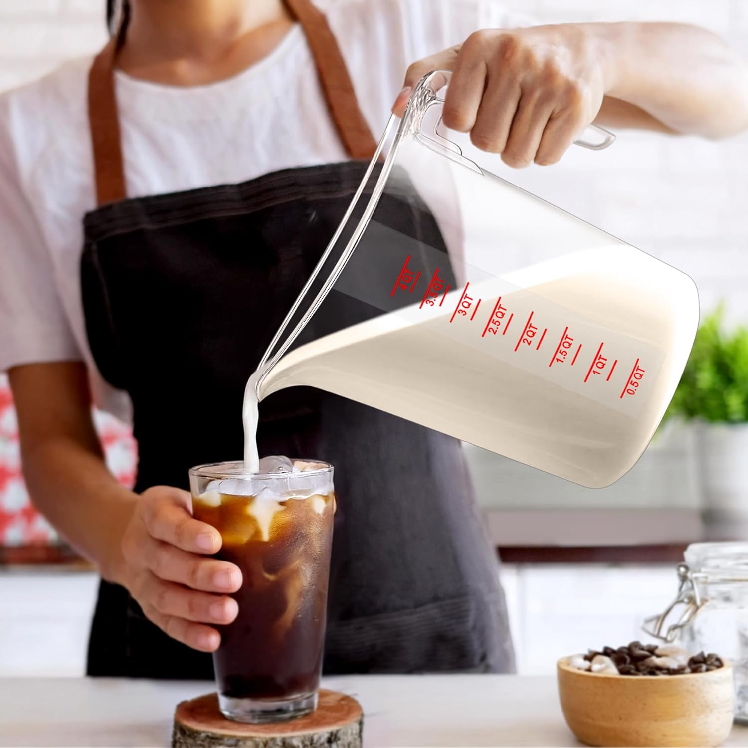 - [MULTIPLE SIZES] The package includes 2 measuring pitchers of the capacity: 16 cups (128 oz, 4000 ml).